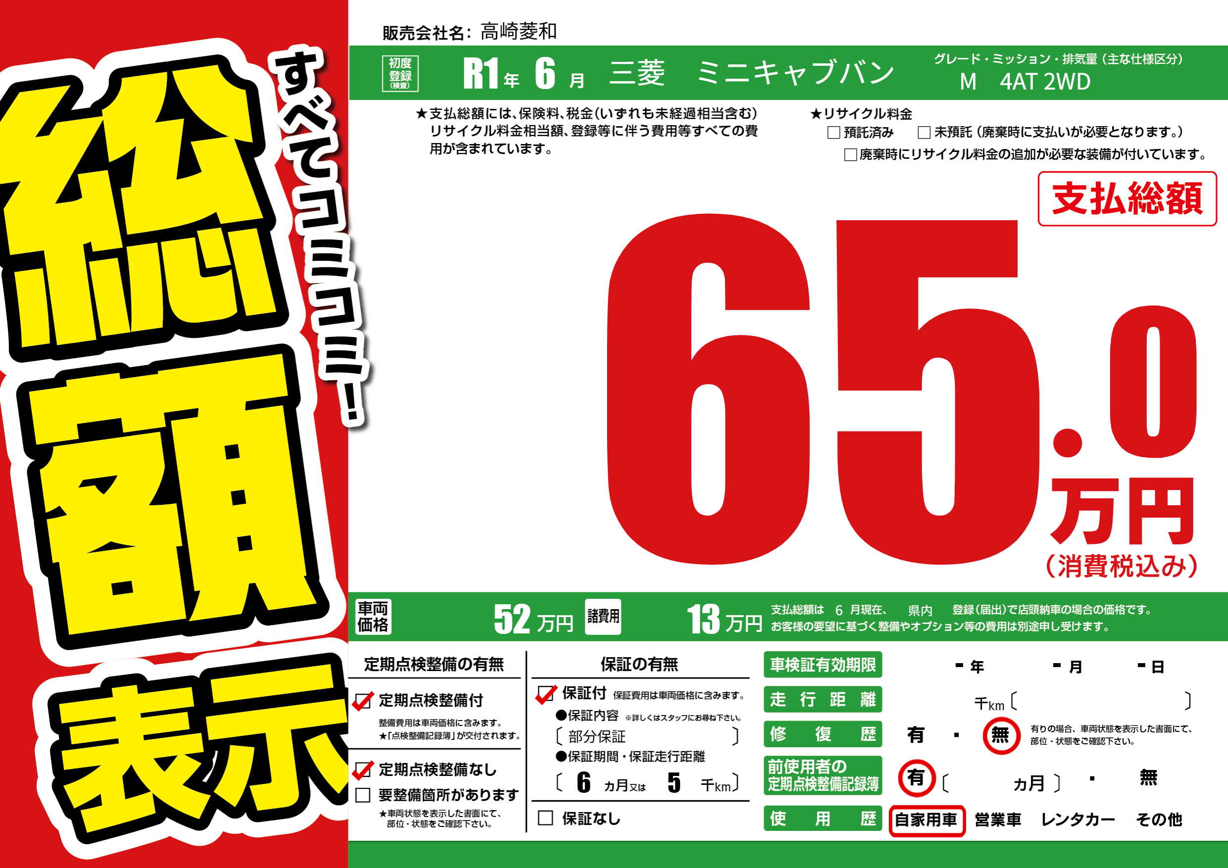 | 定期点検整備 | 定期点検整備あり 定期点検整備なし | ||