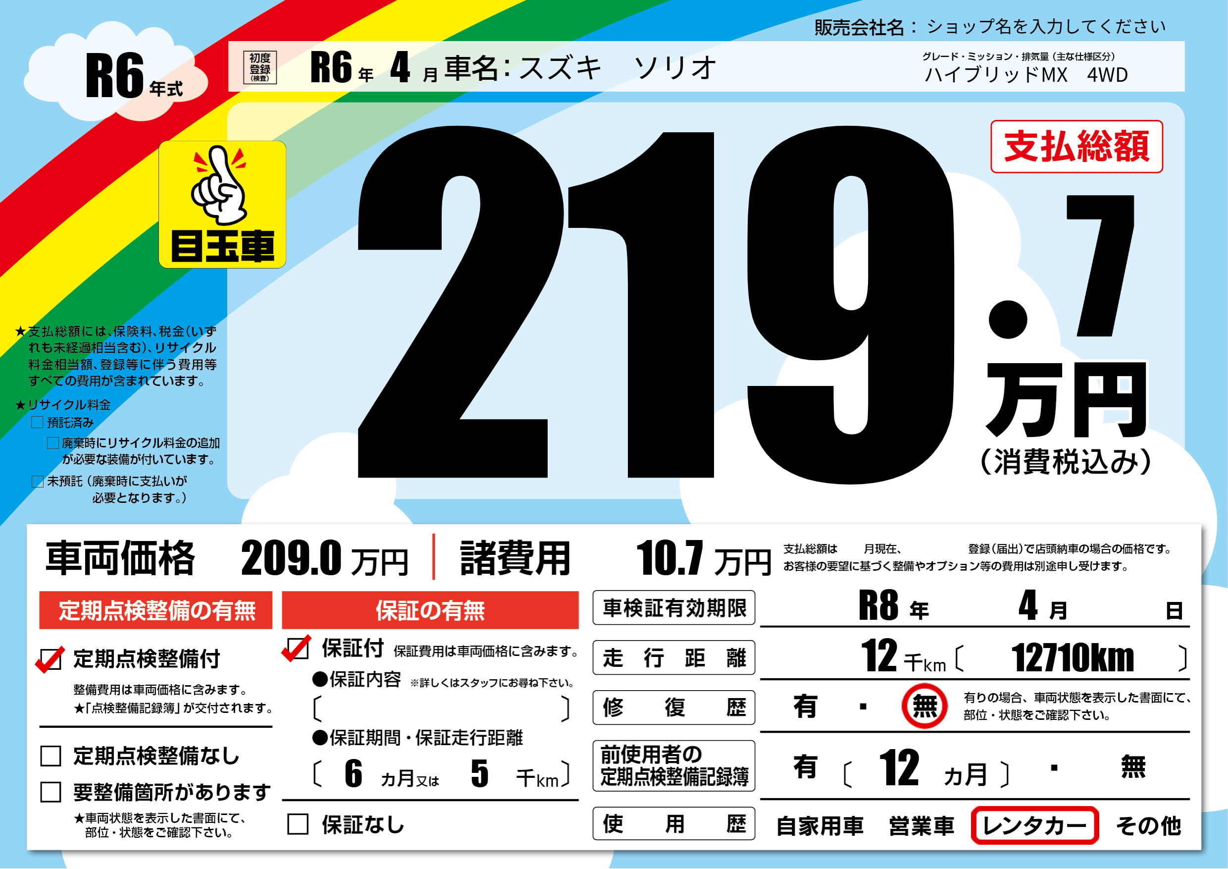 | 走行キロ | 1.2万km | 初年度登録 | R6年4月 |