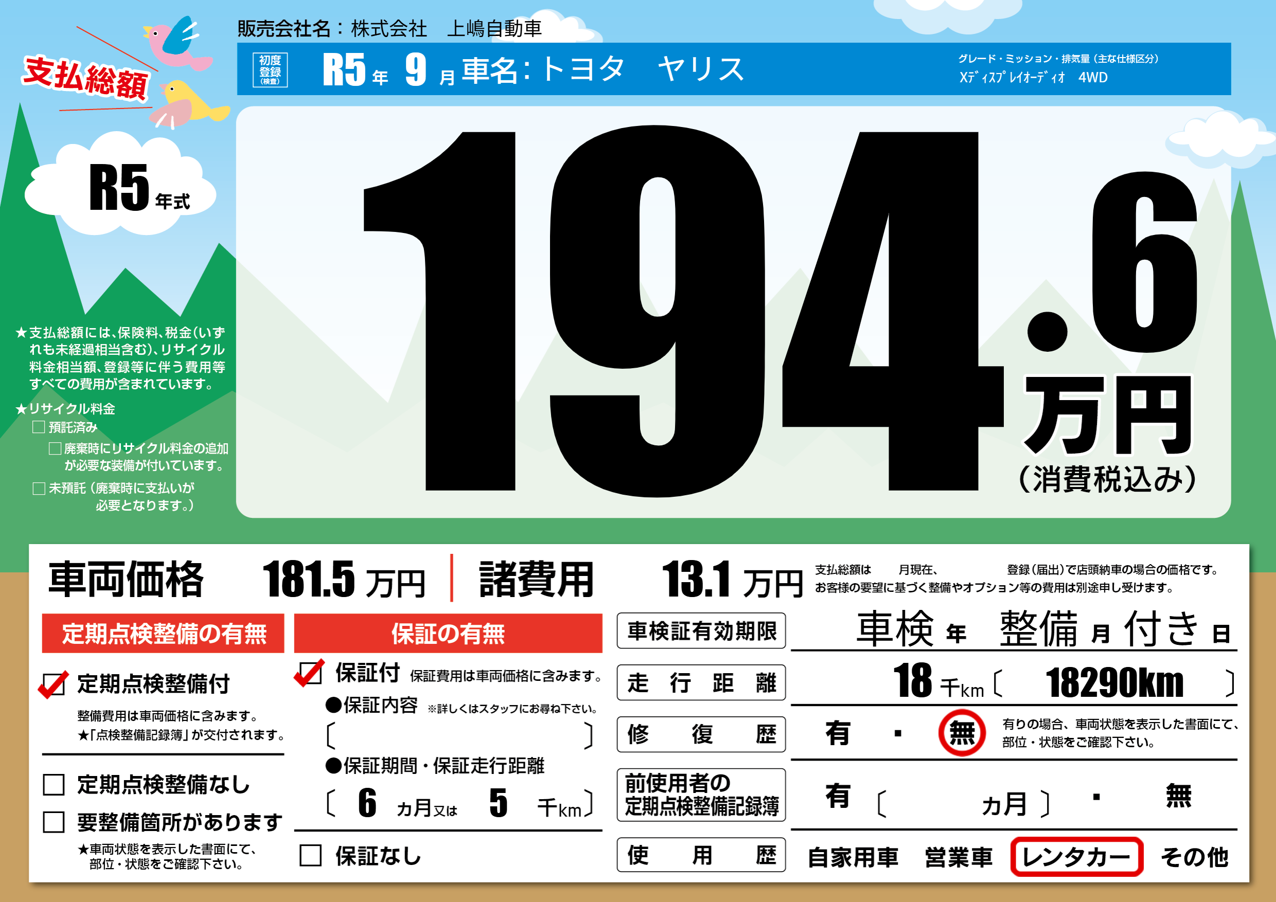| 走行キロ | 1.8万km | 初年度登録 | R5年9月 |