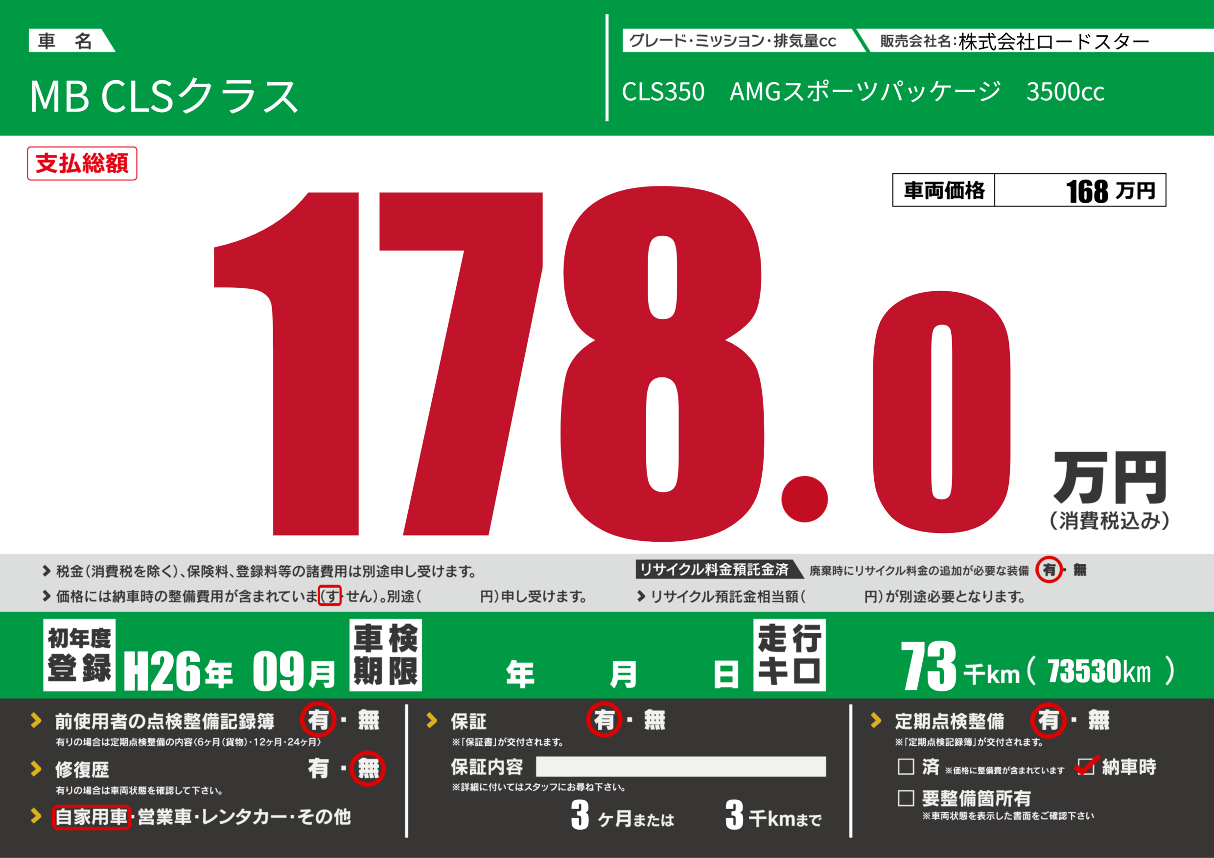 | 定期点検整備 | 定期点検整備あり 納車時あり | ||