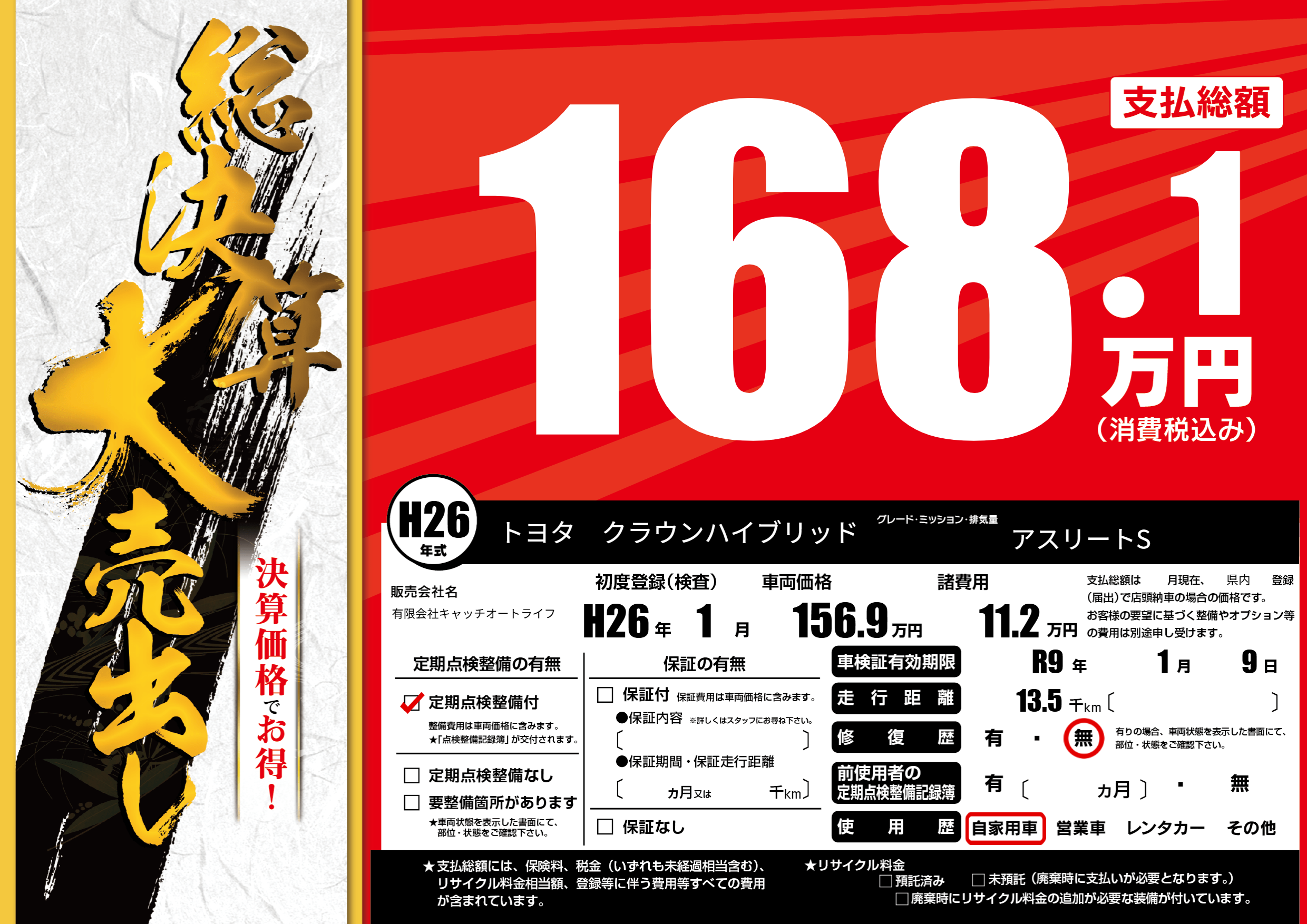 | 車名 | トヨタ クラウンハイブリッド | グレード ミッション 排気量 |