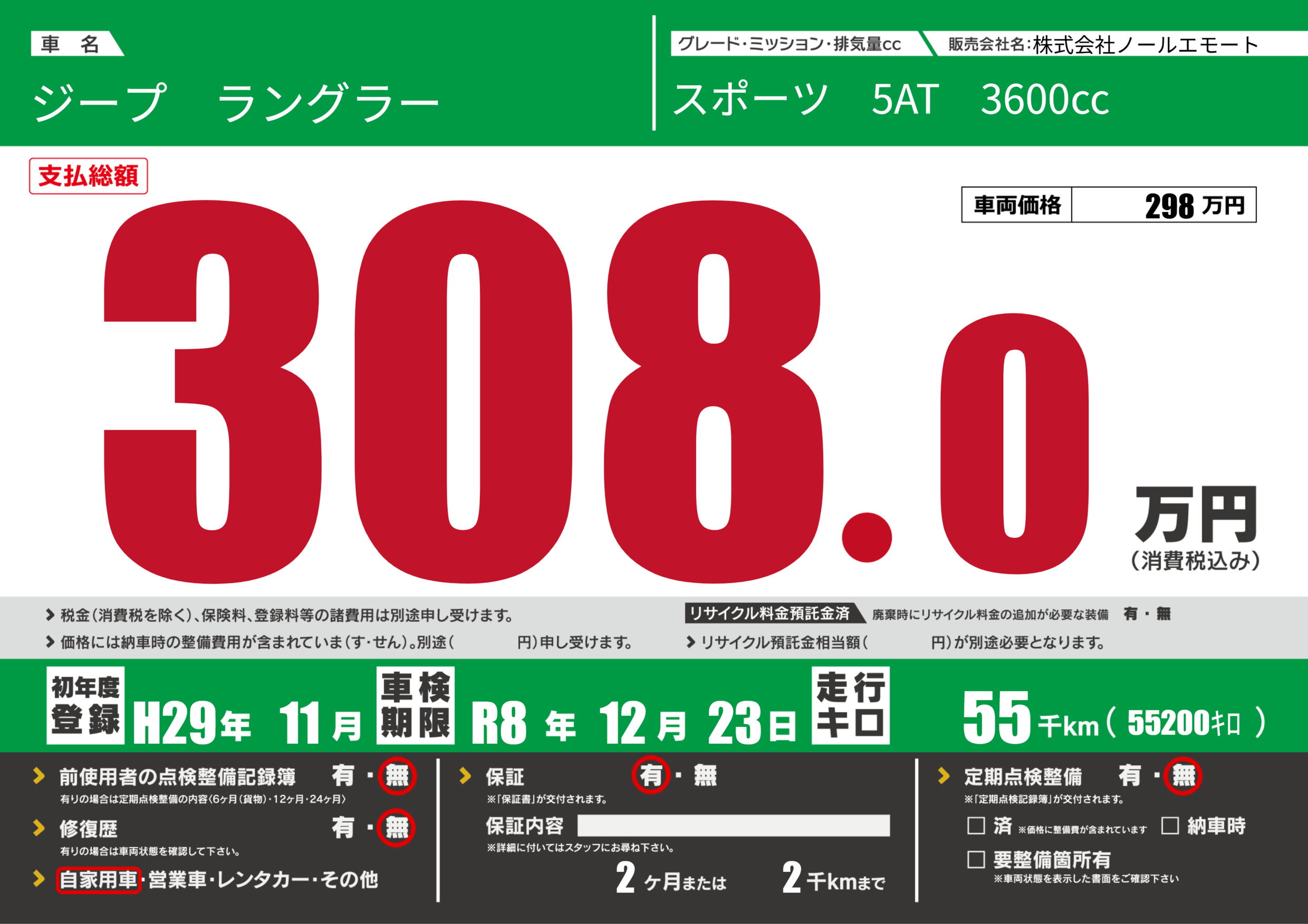 | 車検制限 | R8年 12月 23日 | ||
