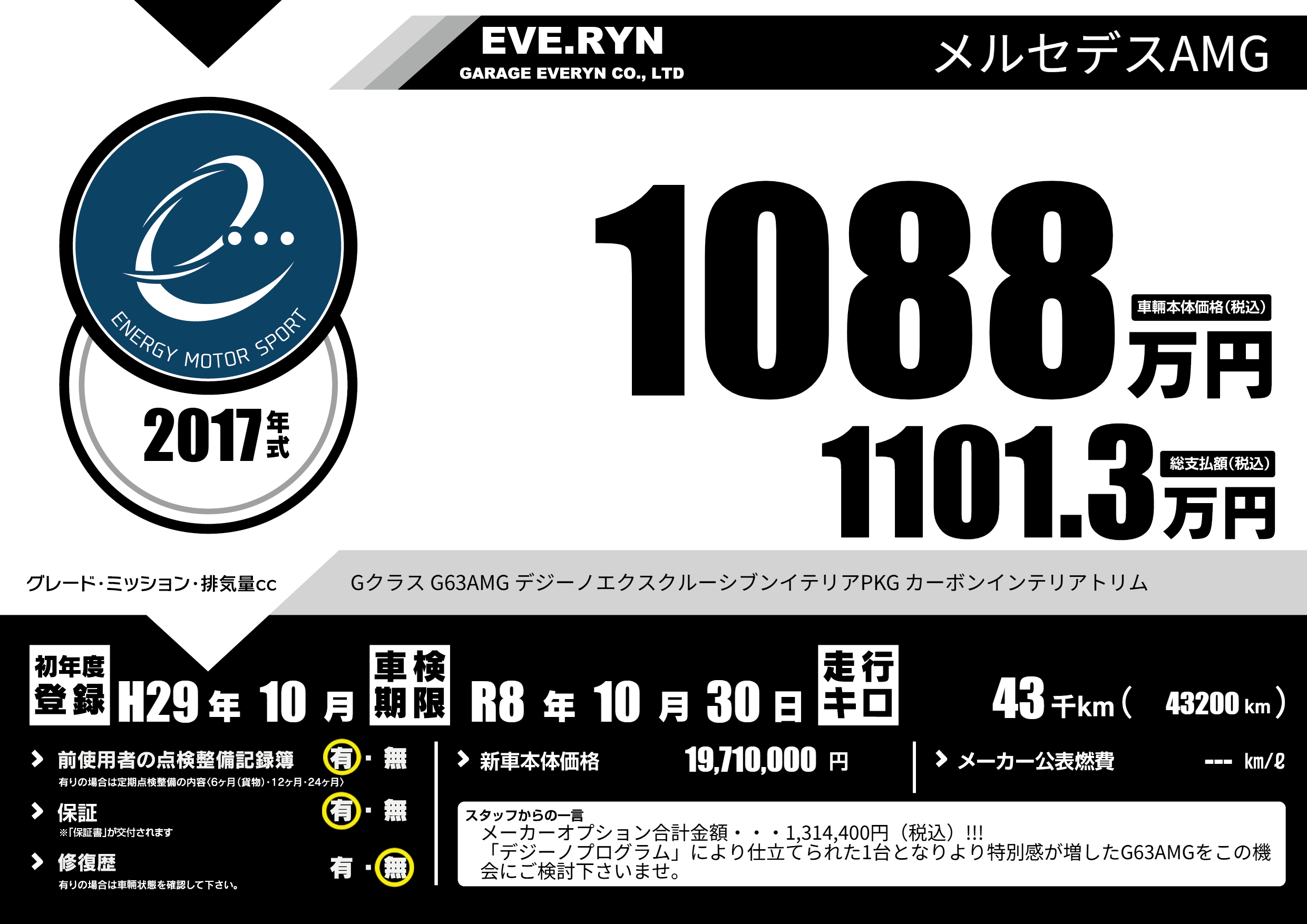 | 車名 | メルセデスAMG | グレード ミッション 排気量 |