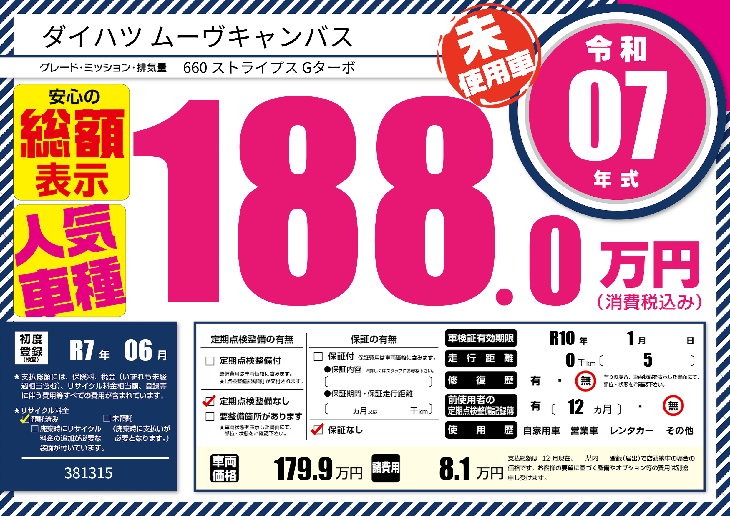 | 車検制限 | R10年 1月 - 日 | ||