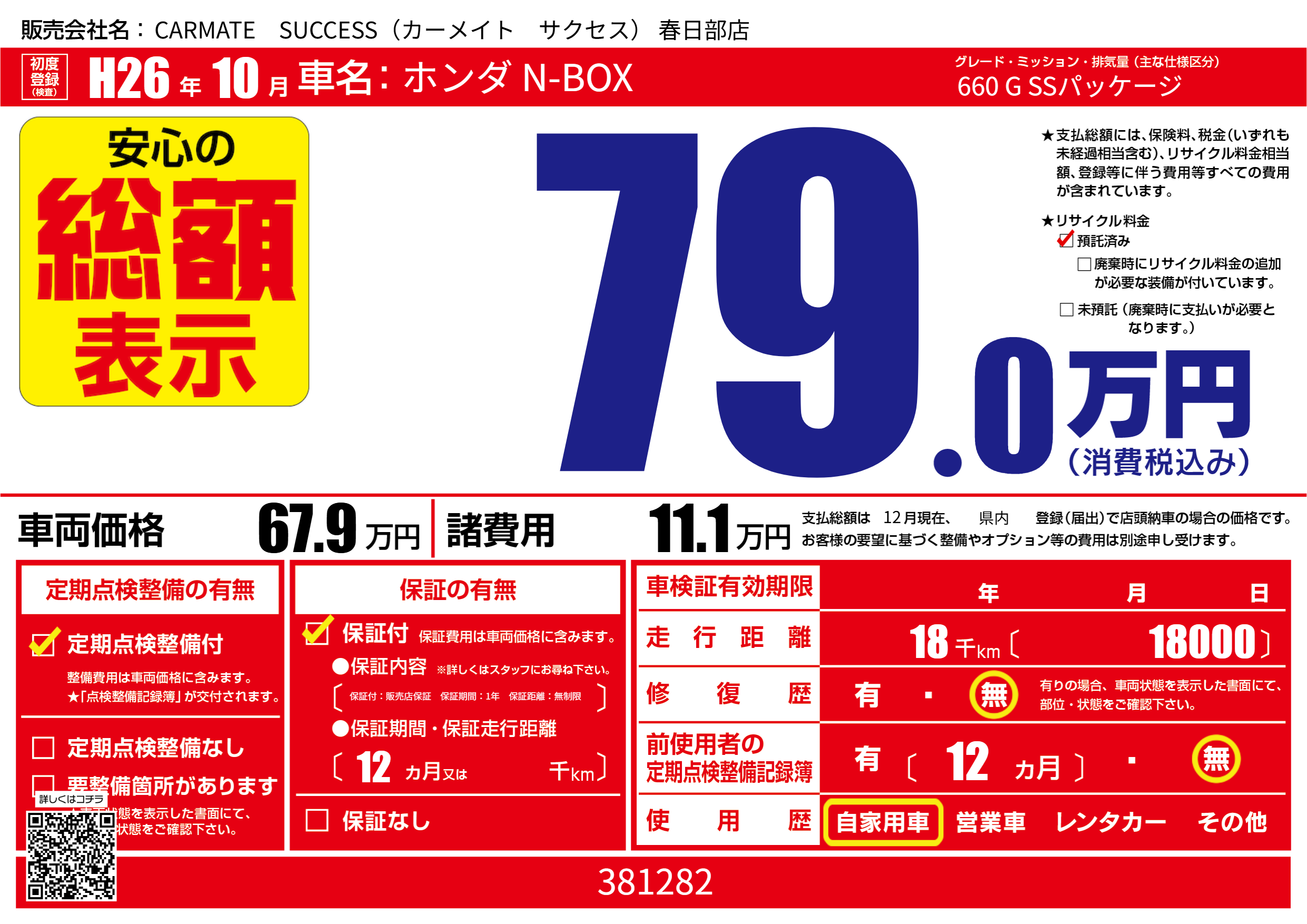 | 走行キロ | 1.8万km | ||