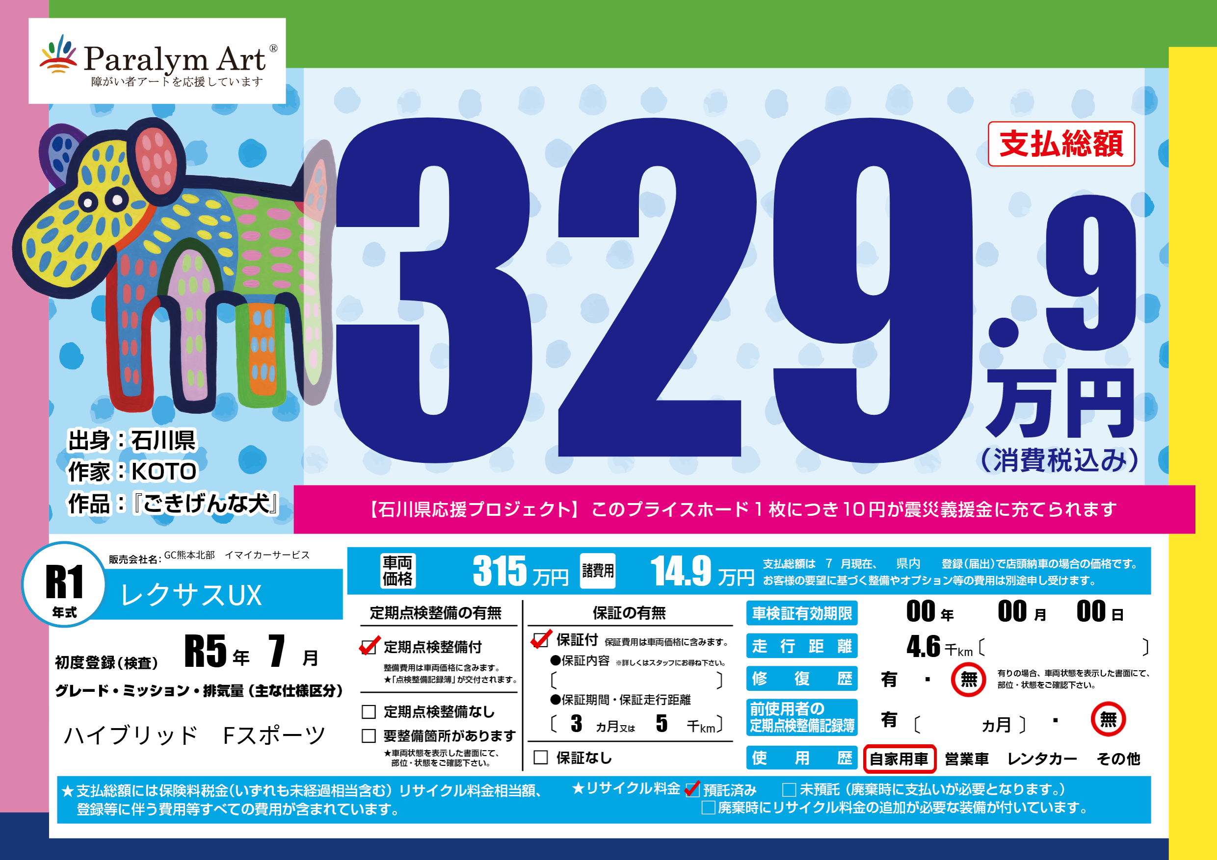 | 走行キロ | 0.4万km | 初年度登録 | R5年7月 |