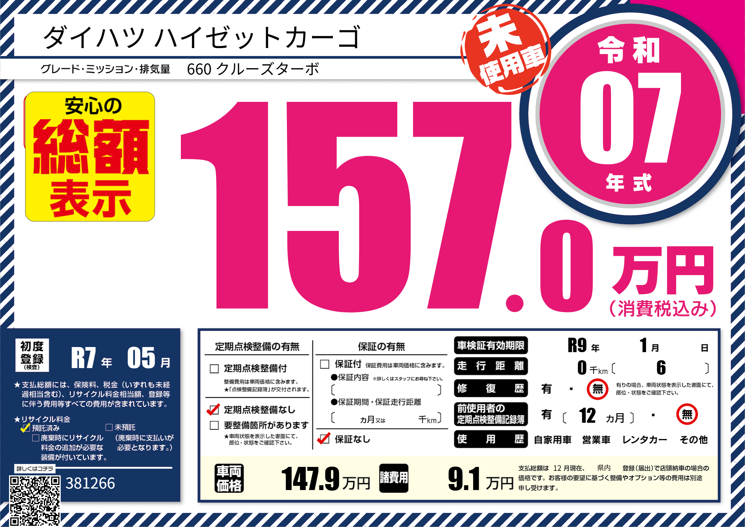 なし | 車検制限 | R9年1月---月 |