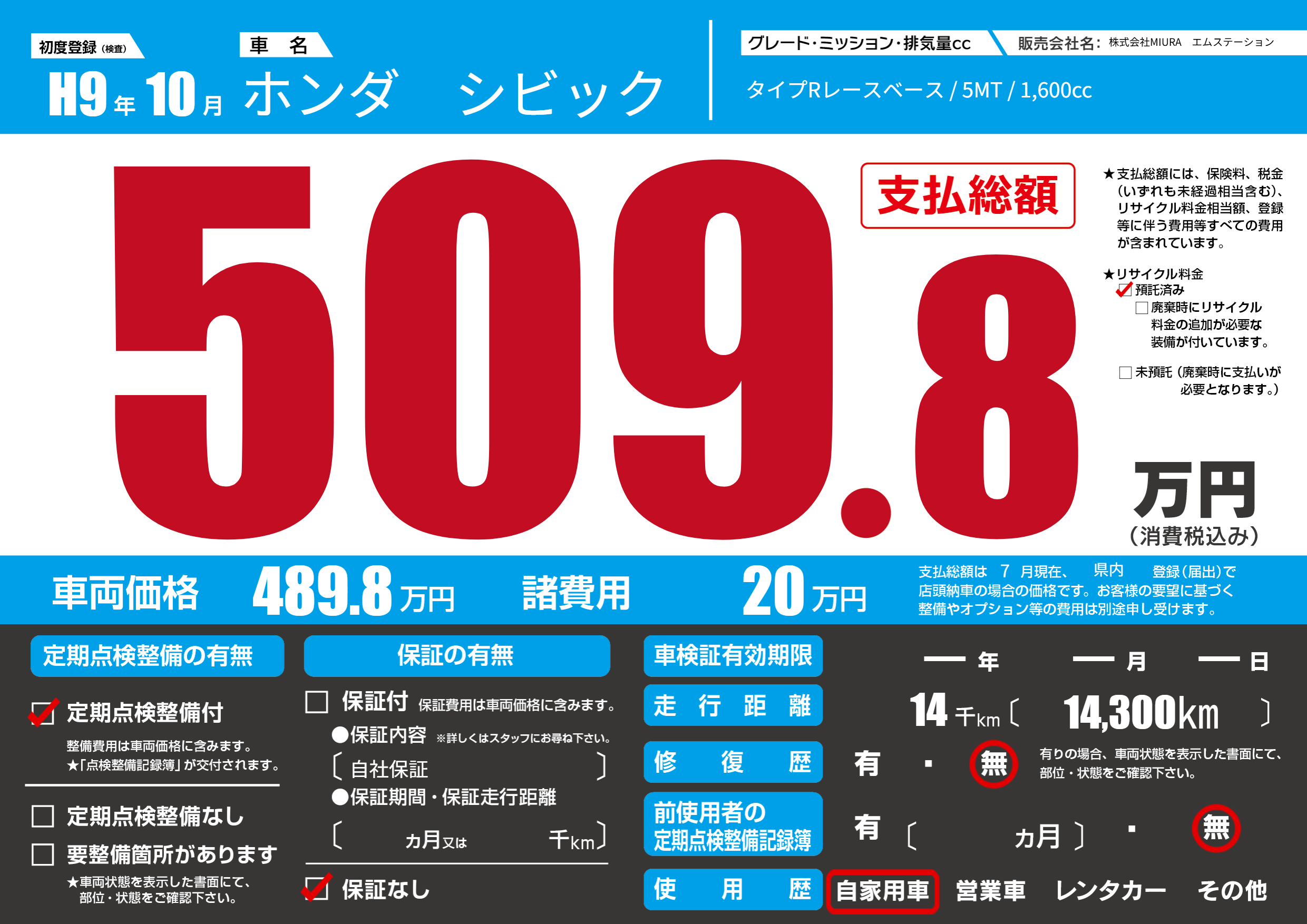 | 定期点検整備 | 定期点検整備あり | ||