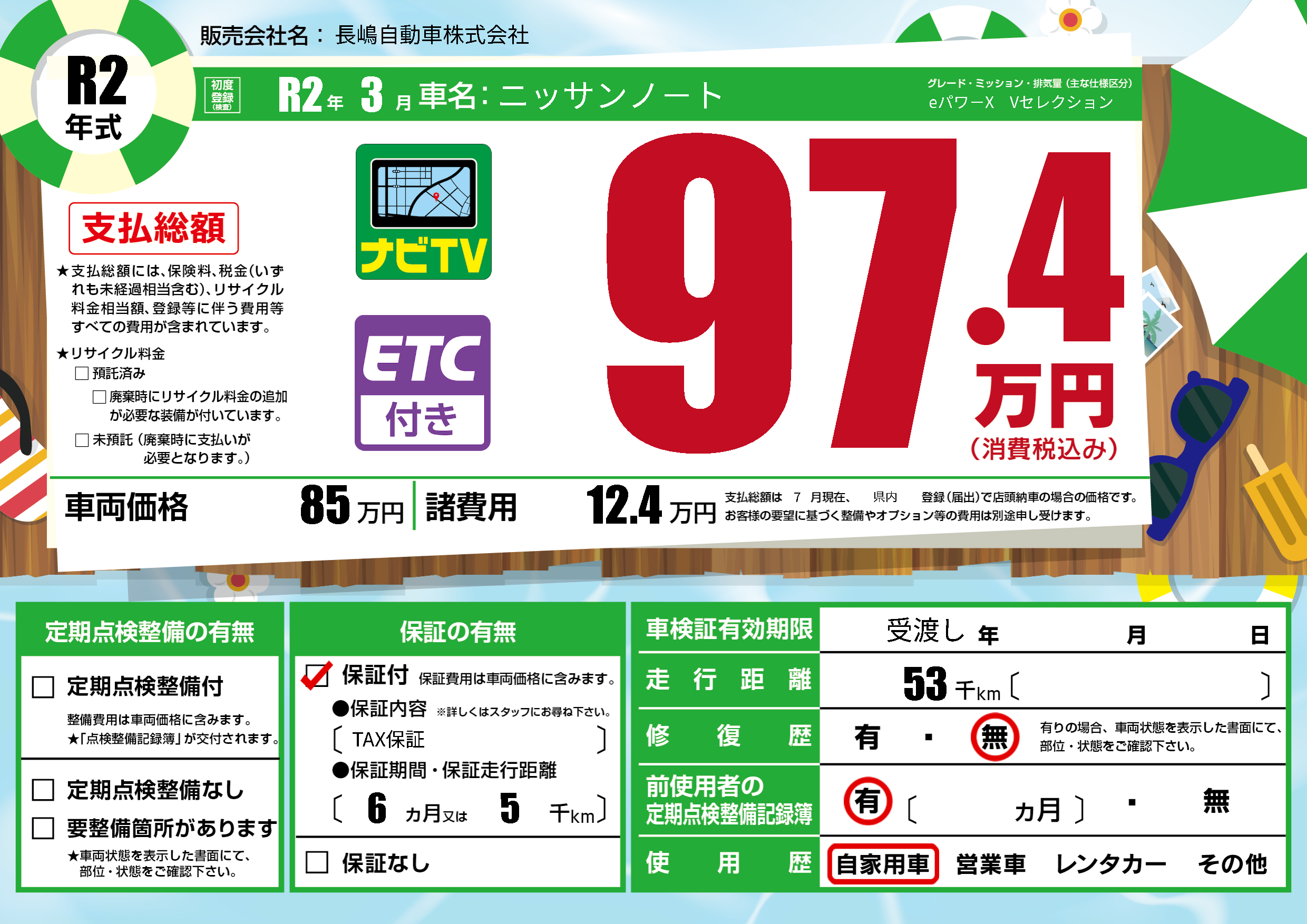 保証付き 保証内容(TAX保証) 6ヶ月または(5)千kmまで |