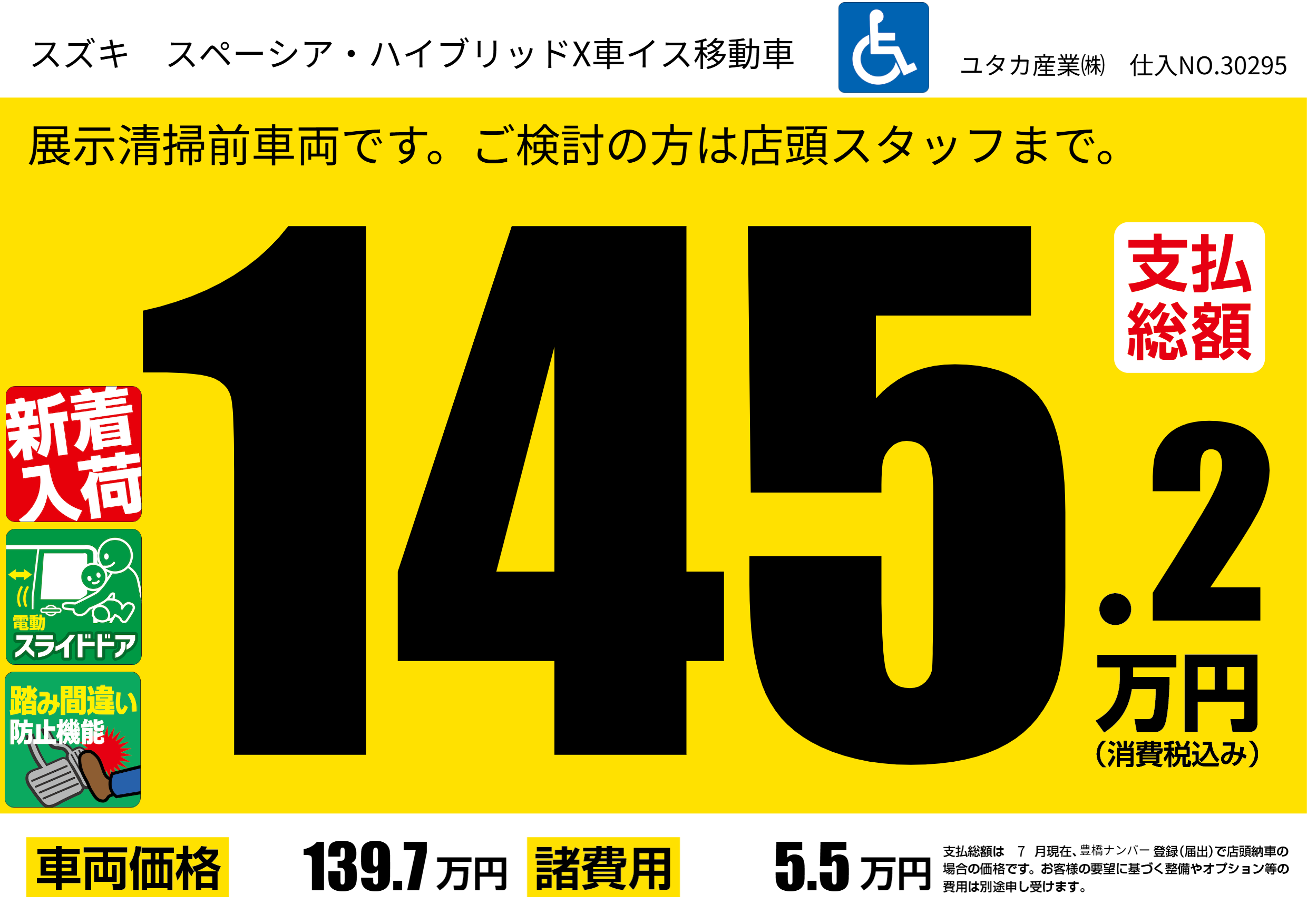 スズキ スペーシア・ハイブリッドX車イス移動車