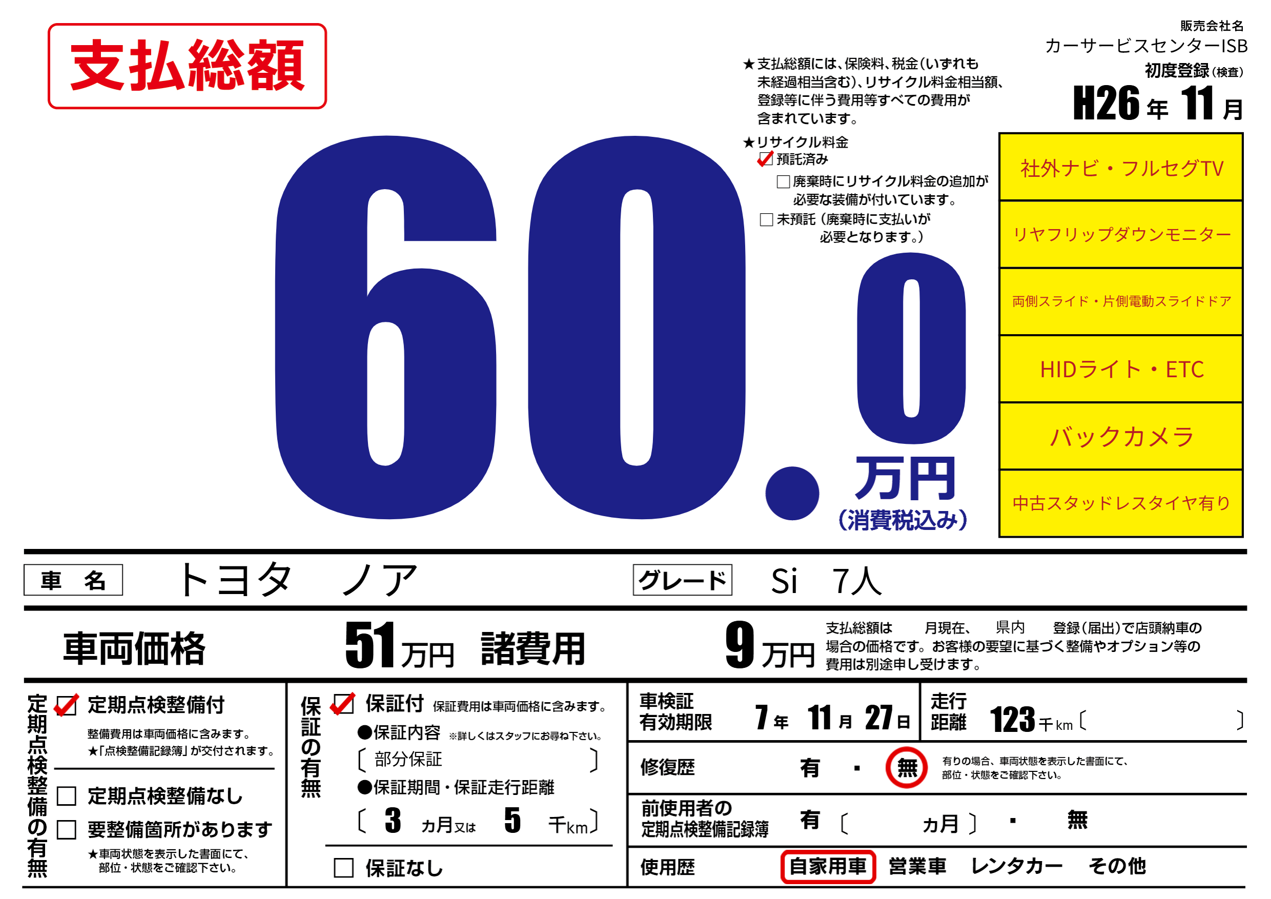 なし | 車検制限 | 7年11月27月 |