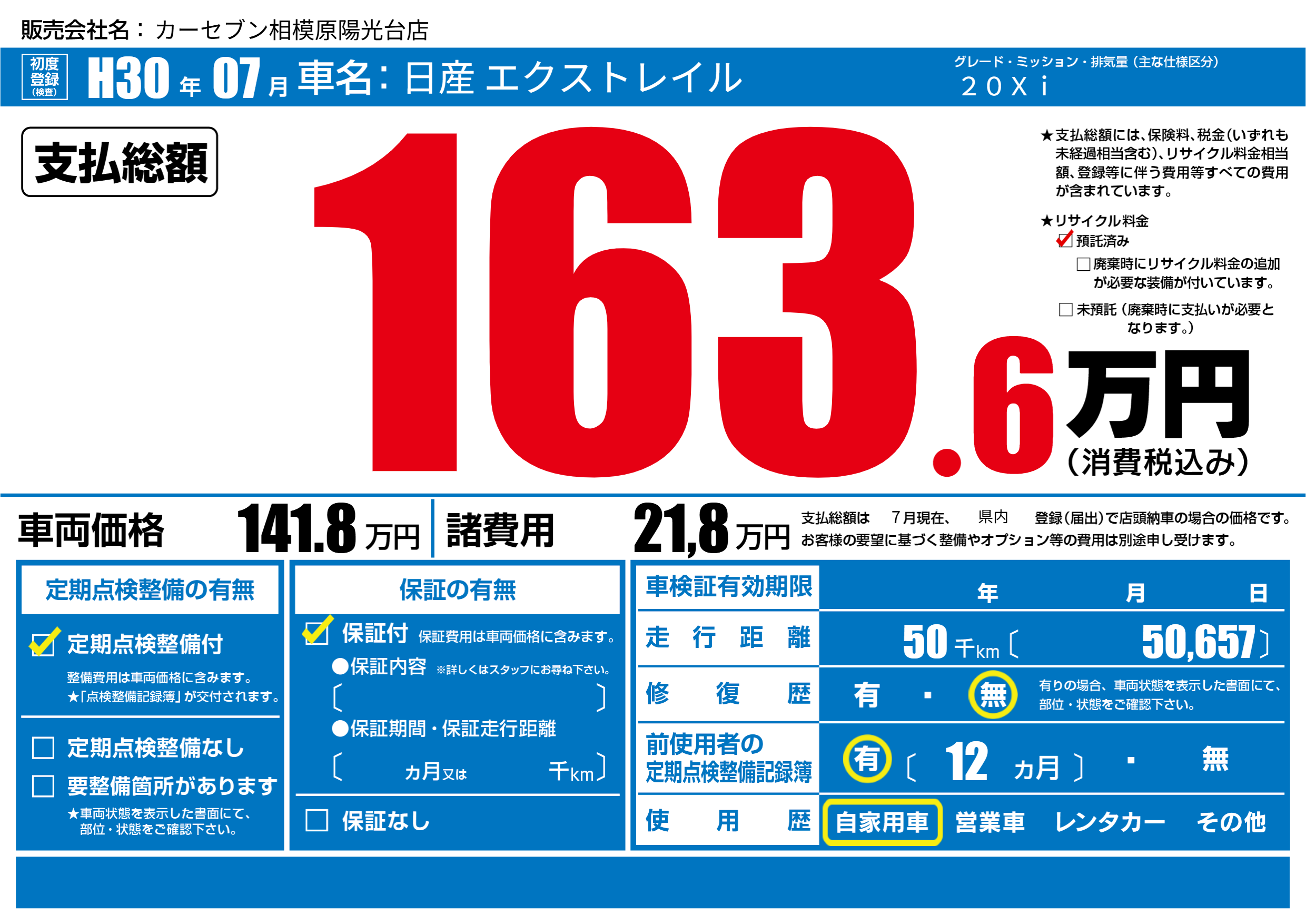 | 定期点検整備 | 定期点検整備あり | ||