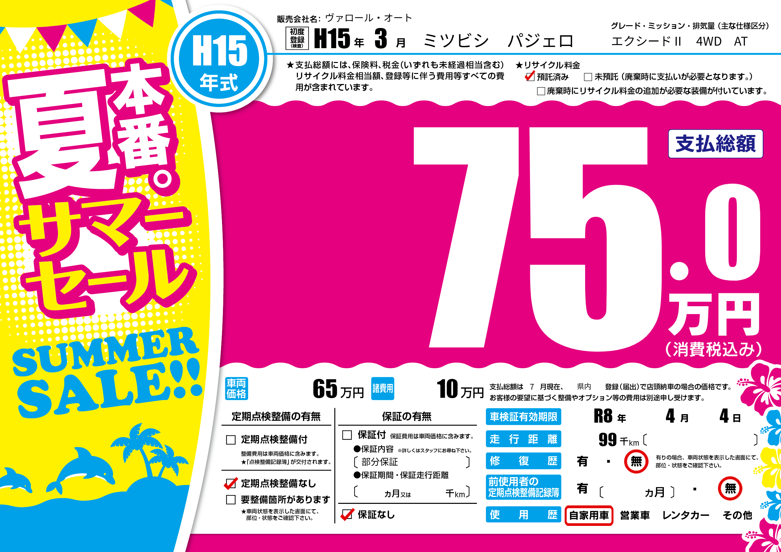 | 走行キロ | 9.9万km | 初年度登録 | H15年3月 |