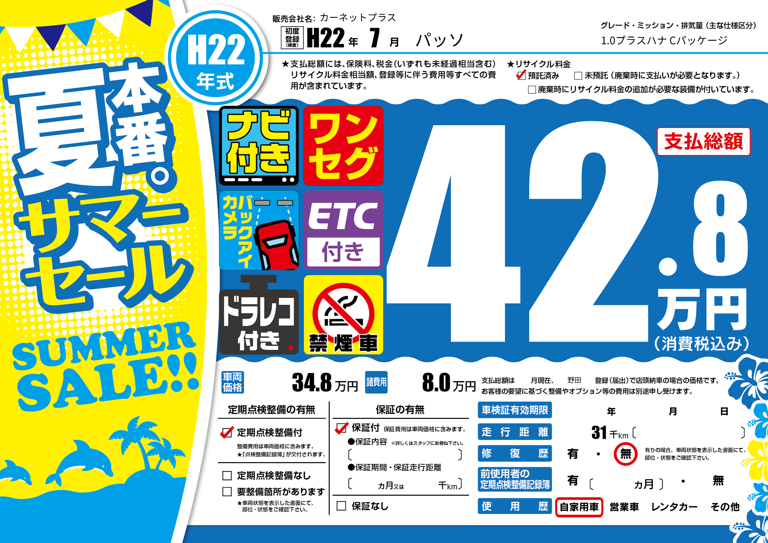 | 車名 | パッソ | グレード ミッション 排気量 |