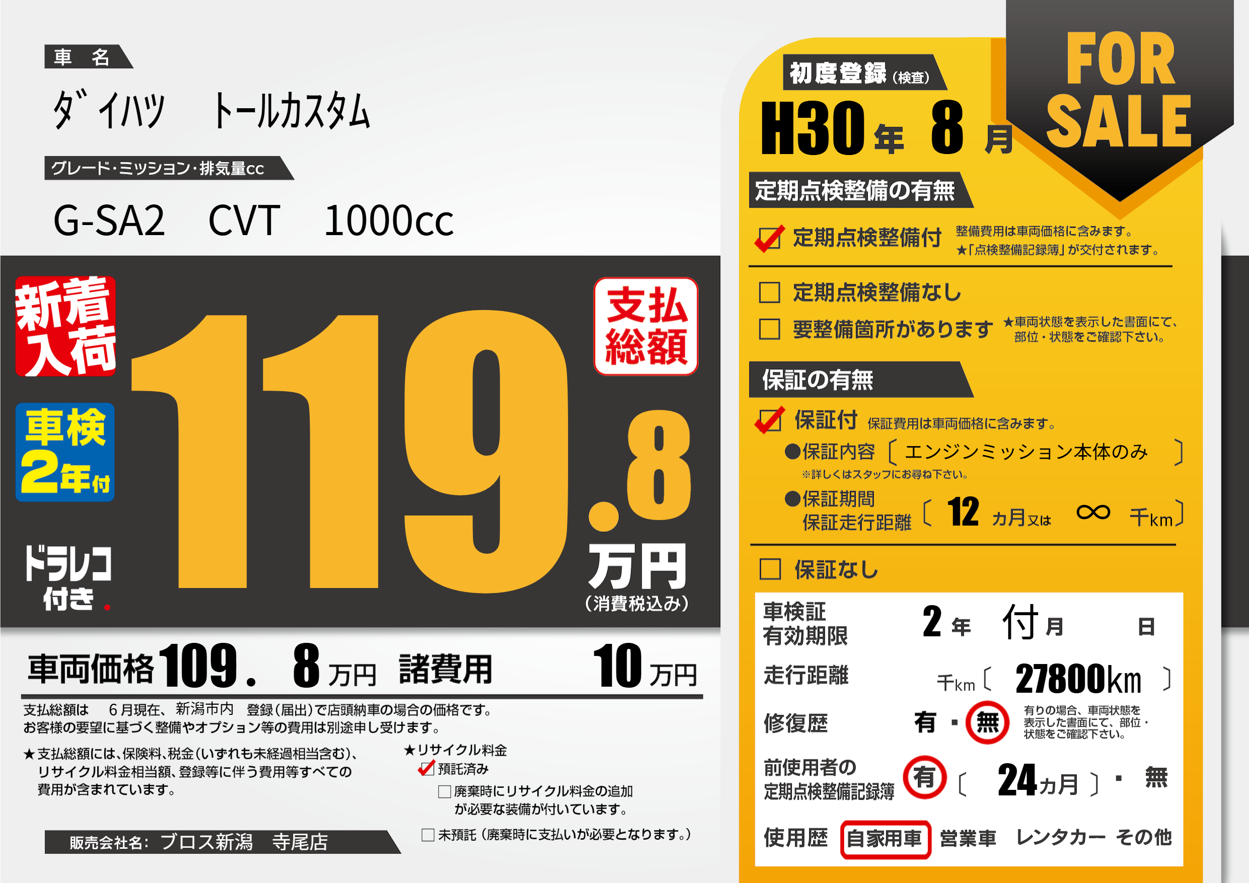 | 初年度登録 | H30年8月 | ||