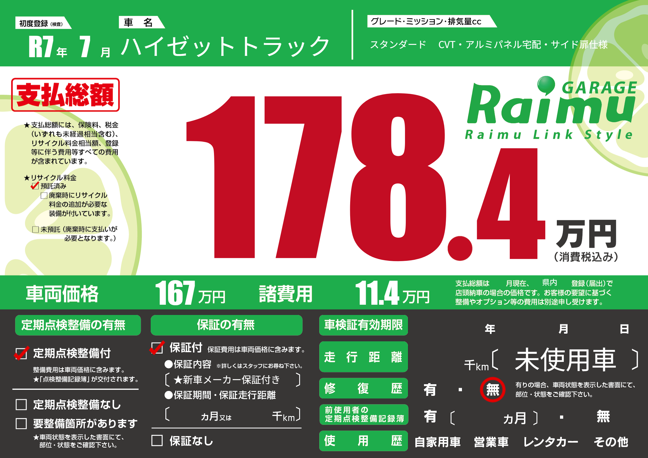 | 走行キロ | - | 初年度登録 | R7年7月 |