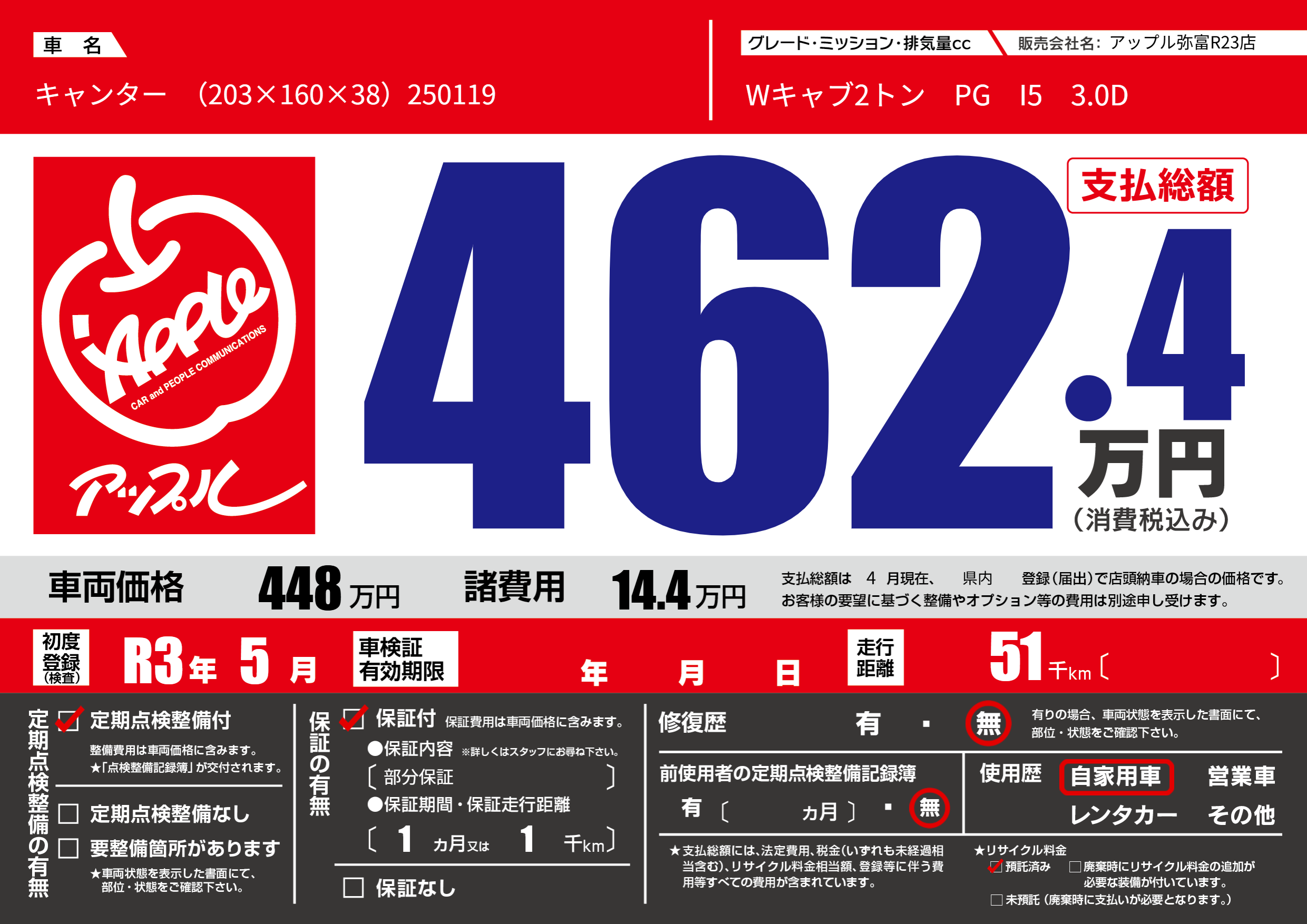 | 走行キロ | 5.1万km | 初年度登録 | R3年5月 |