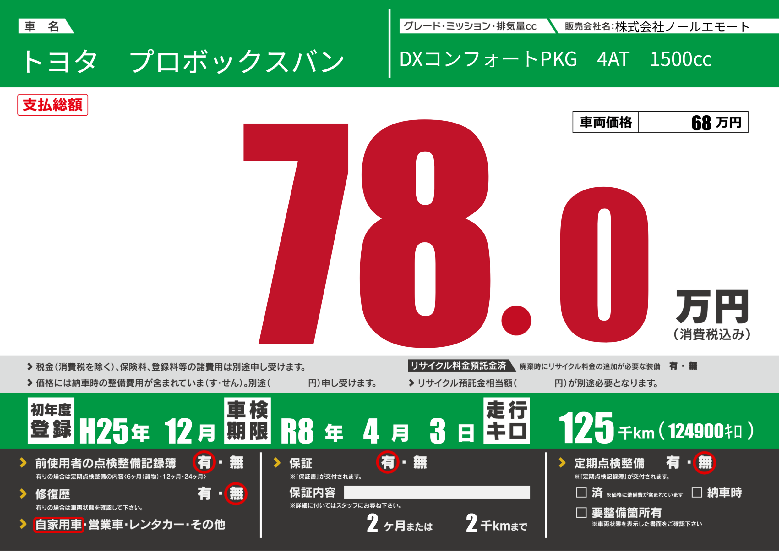 なし | 車検制限 | R8年4月3月 |