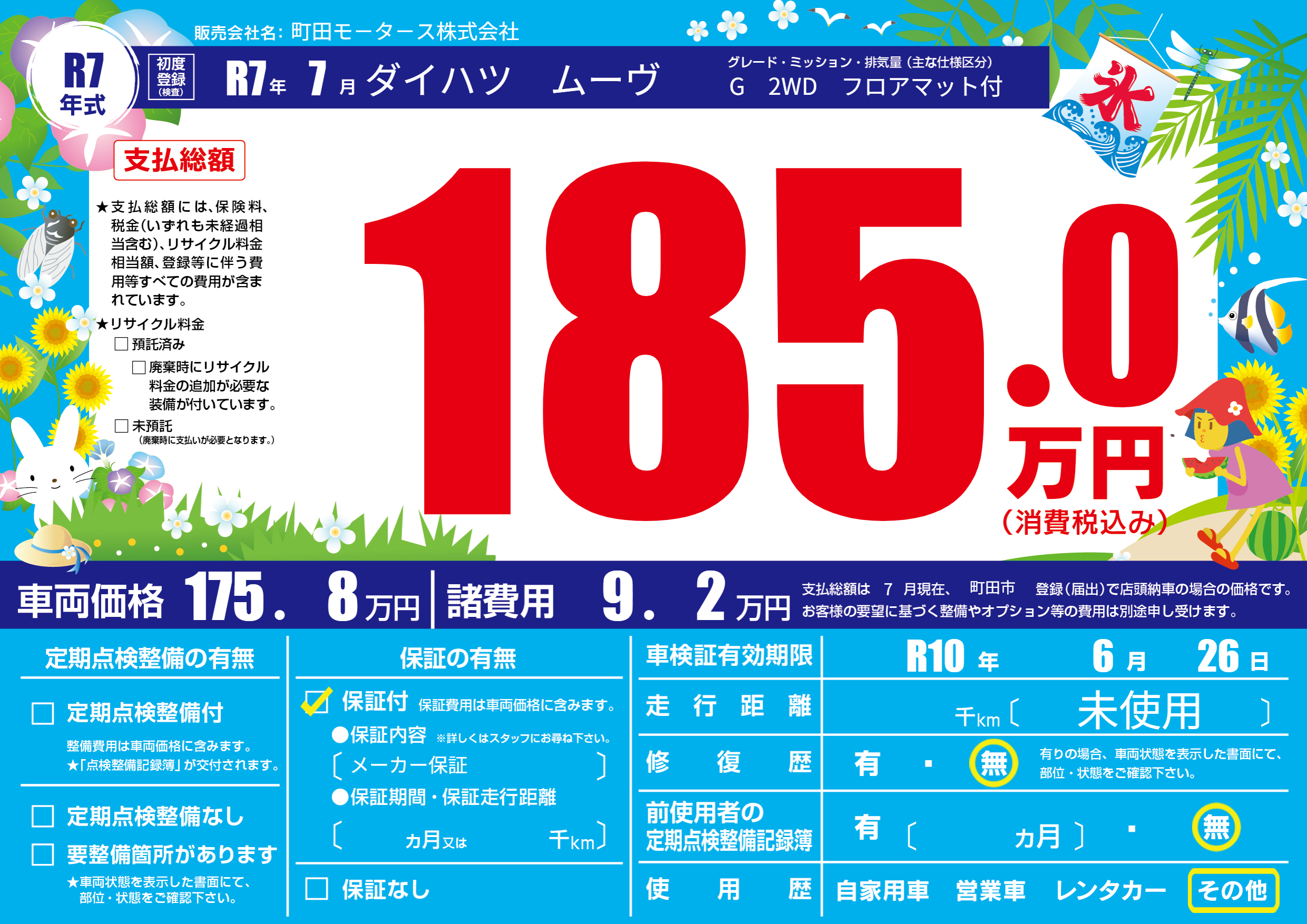| 走行キロ | - | 初年度登録 | R7年7月 |