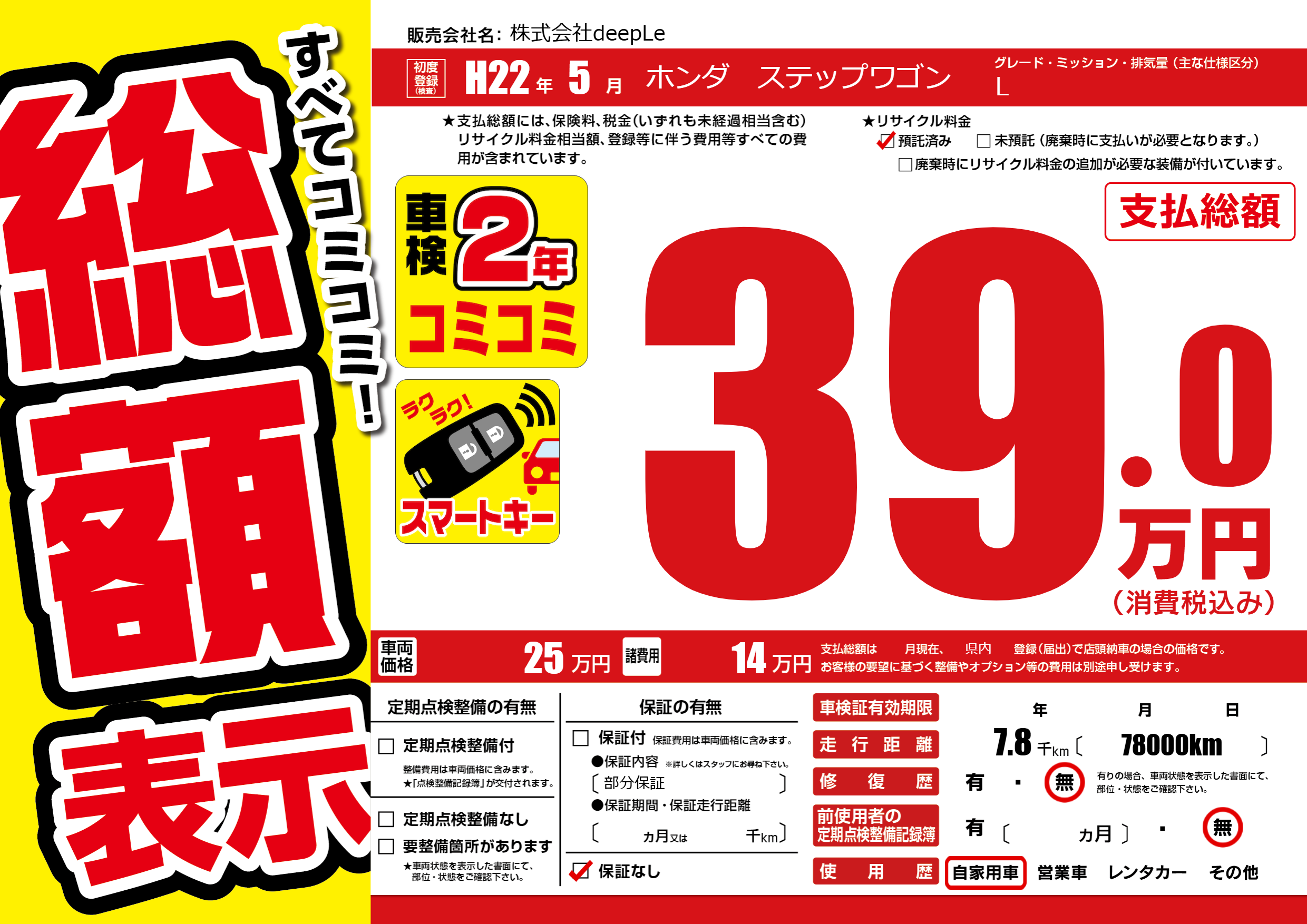 保証なし 保証内容(部分保証) ---ヶ月または()千kmまで |