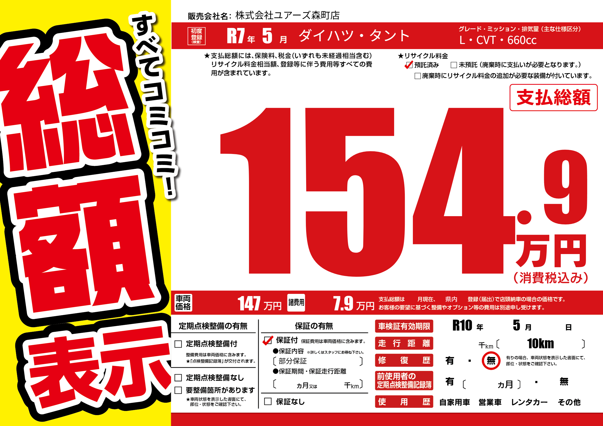 株式会社ユアーズ森町店の展示車