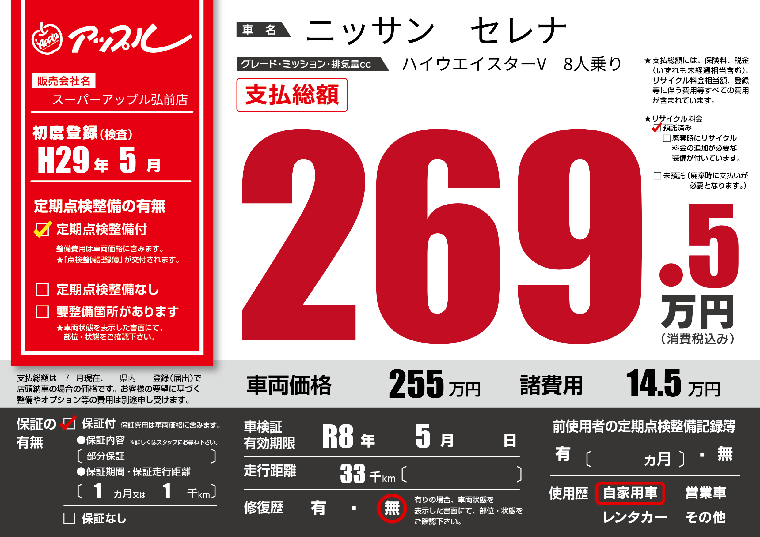 なし | 車検制限 | R8年5月---月 |