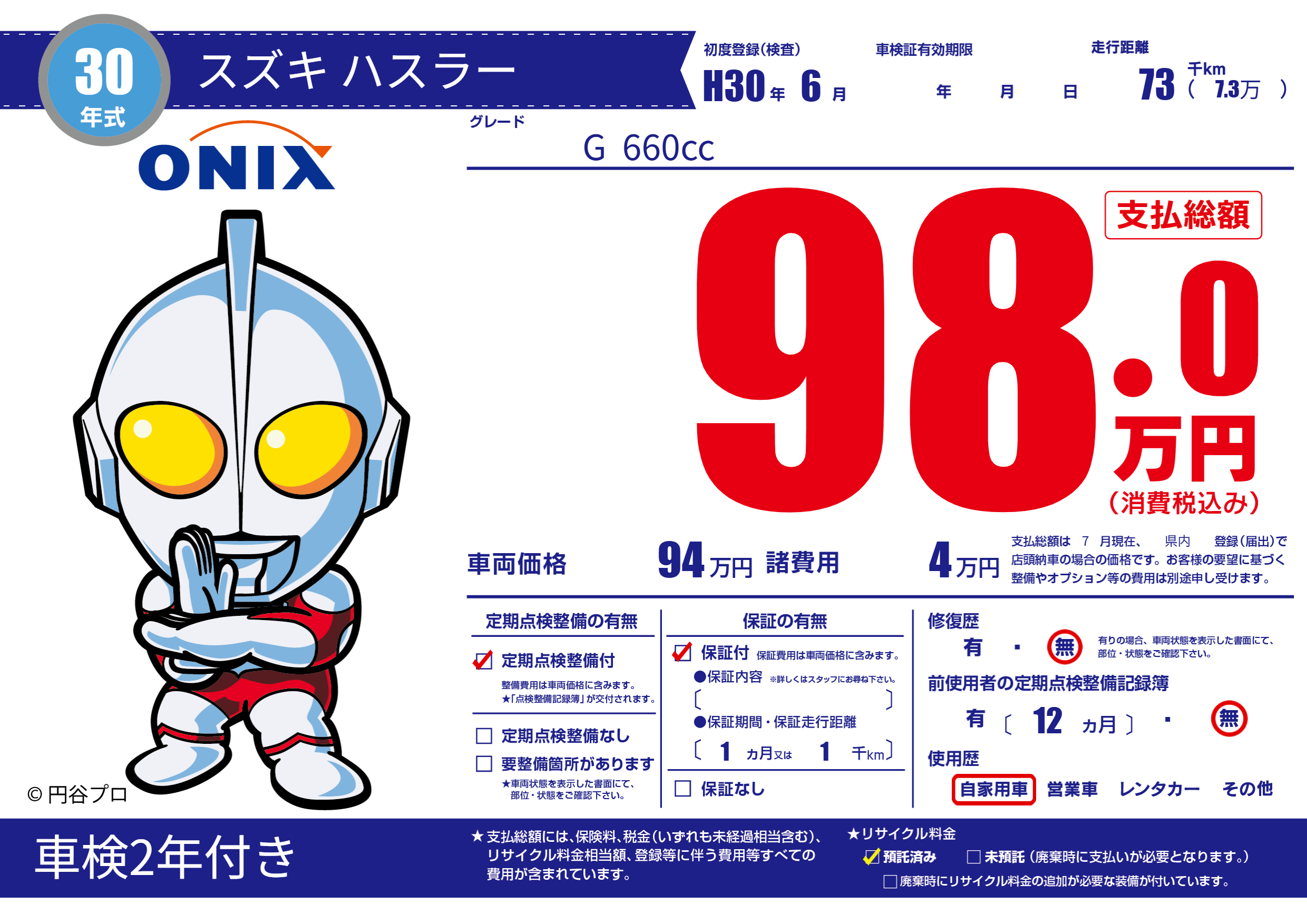 | 走行キロ | 7.3万km | 初年度登録 | H30年6月 |