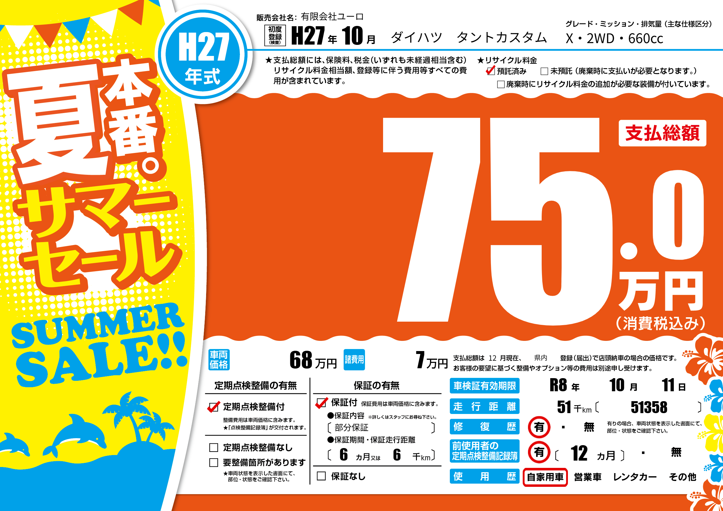 | 走行キロ | 5.1万km | 初年度登録 | H27年10月 |