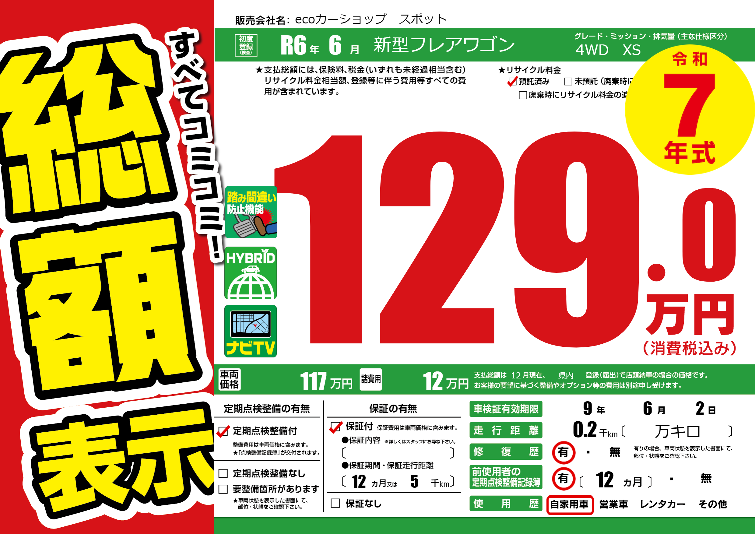 | 車名 | 新型フレアワゴン | グレード ミッション 排気量 |