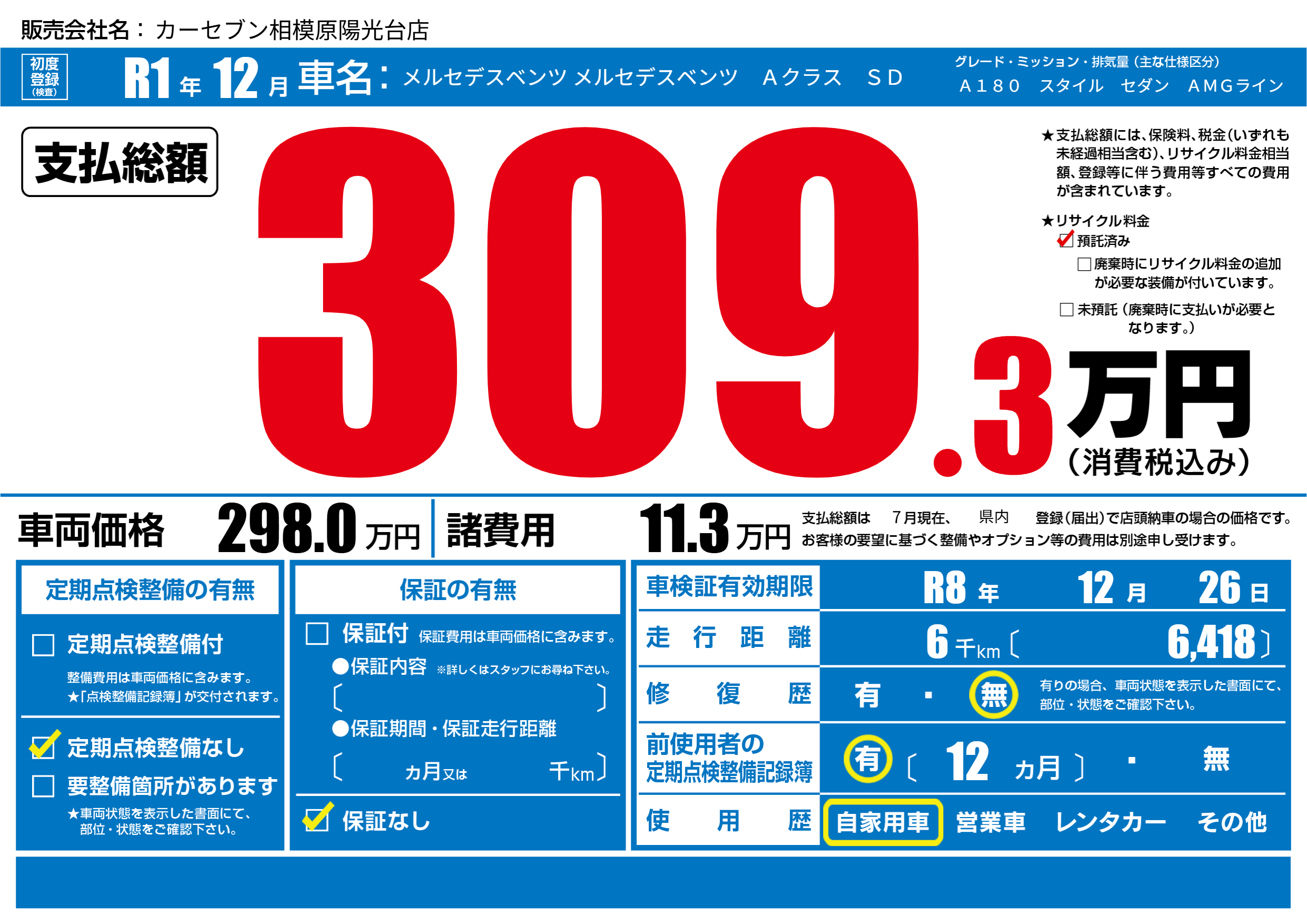 | 定期点検整備 | 定期点検整備なし | ||