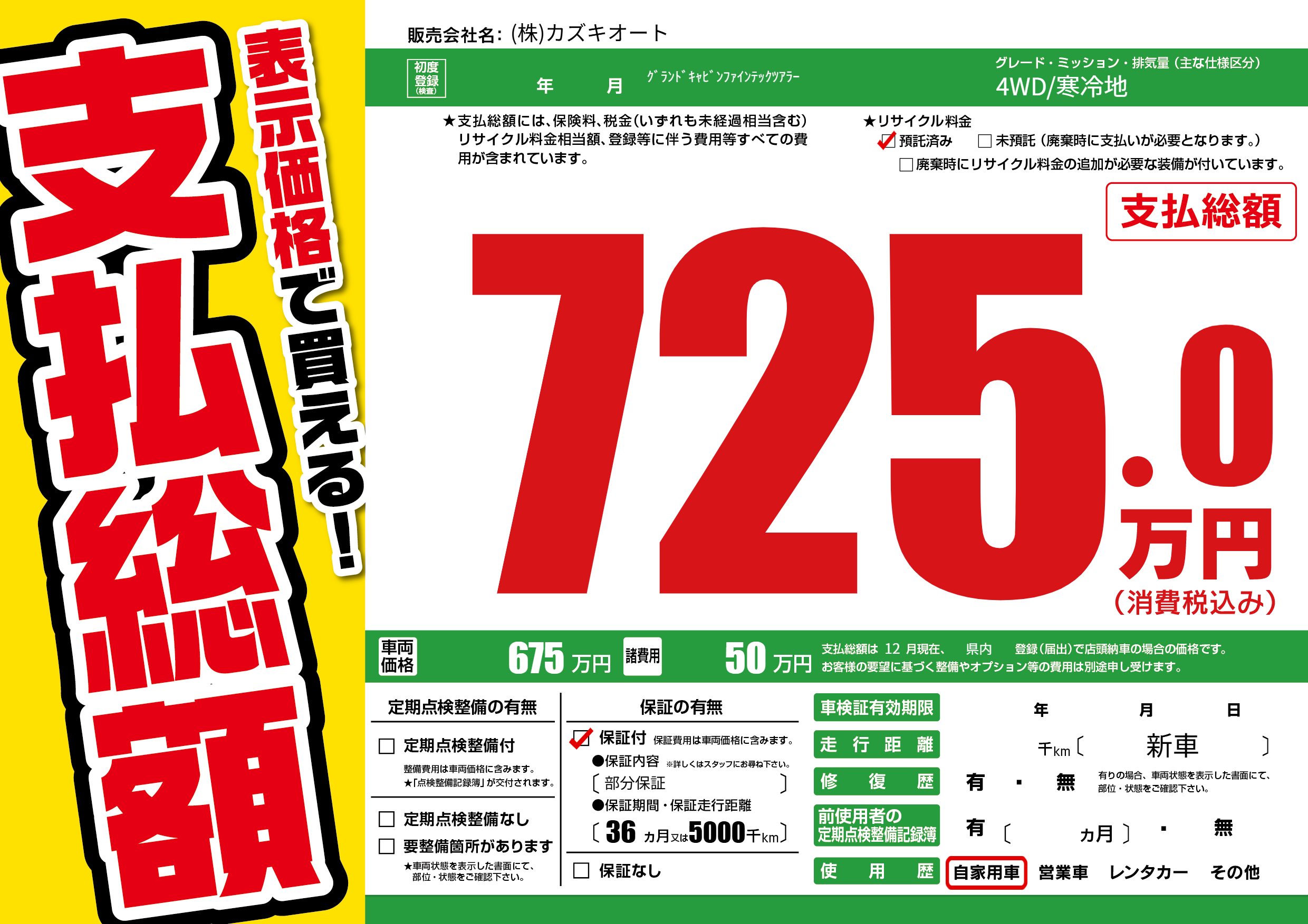 保証付き 保証内容(部分保証) 36ヶ月または(5000)千kmまで |