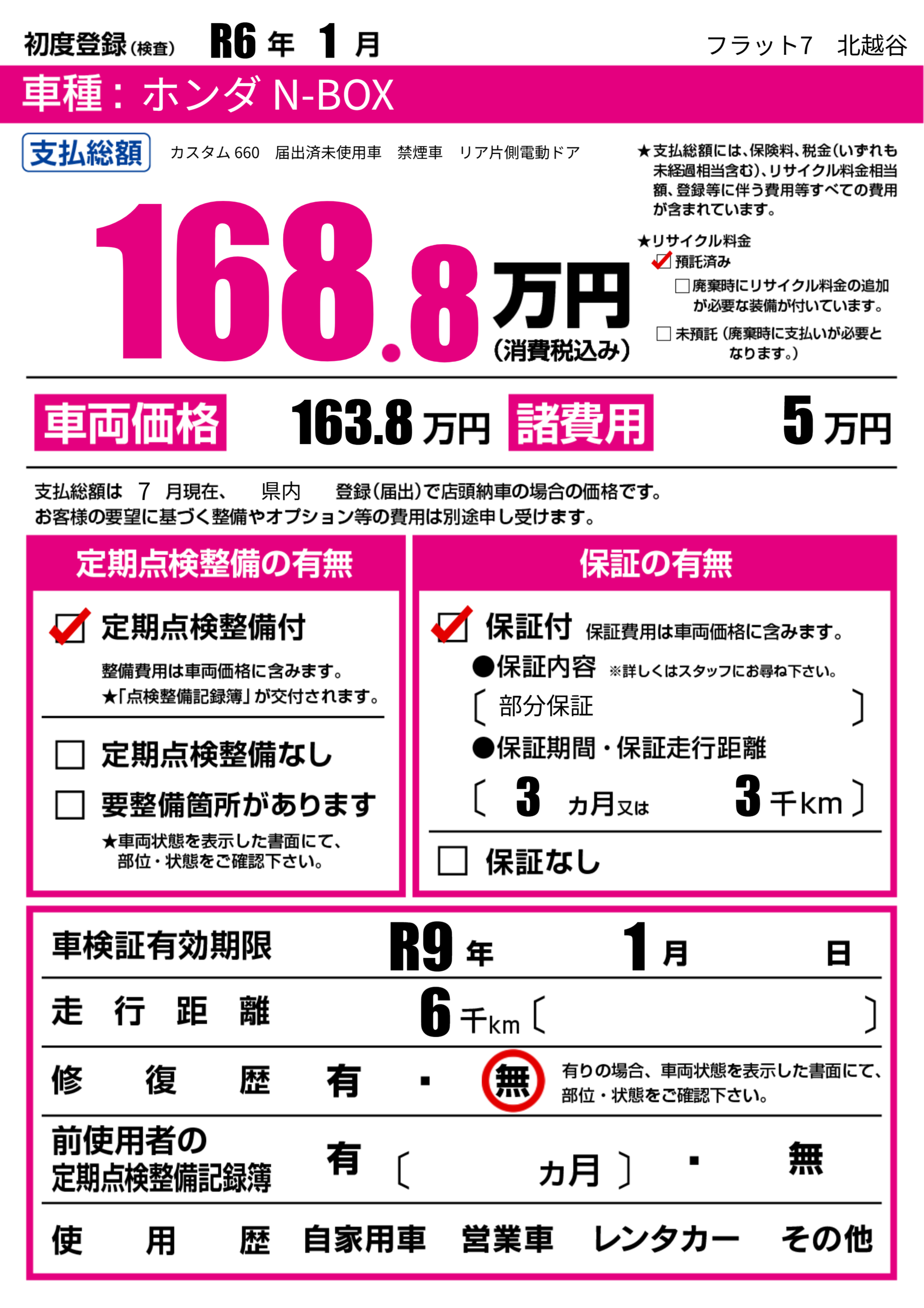 なし | 車検制限 | R9年1月---月 |