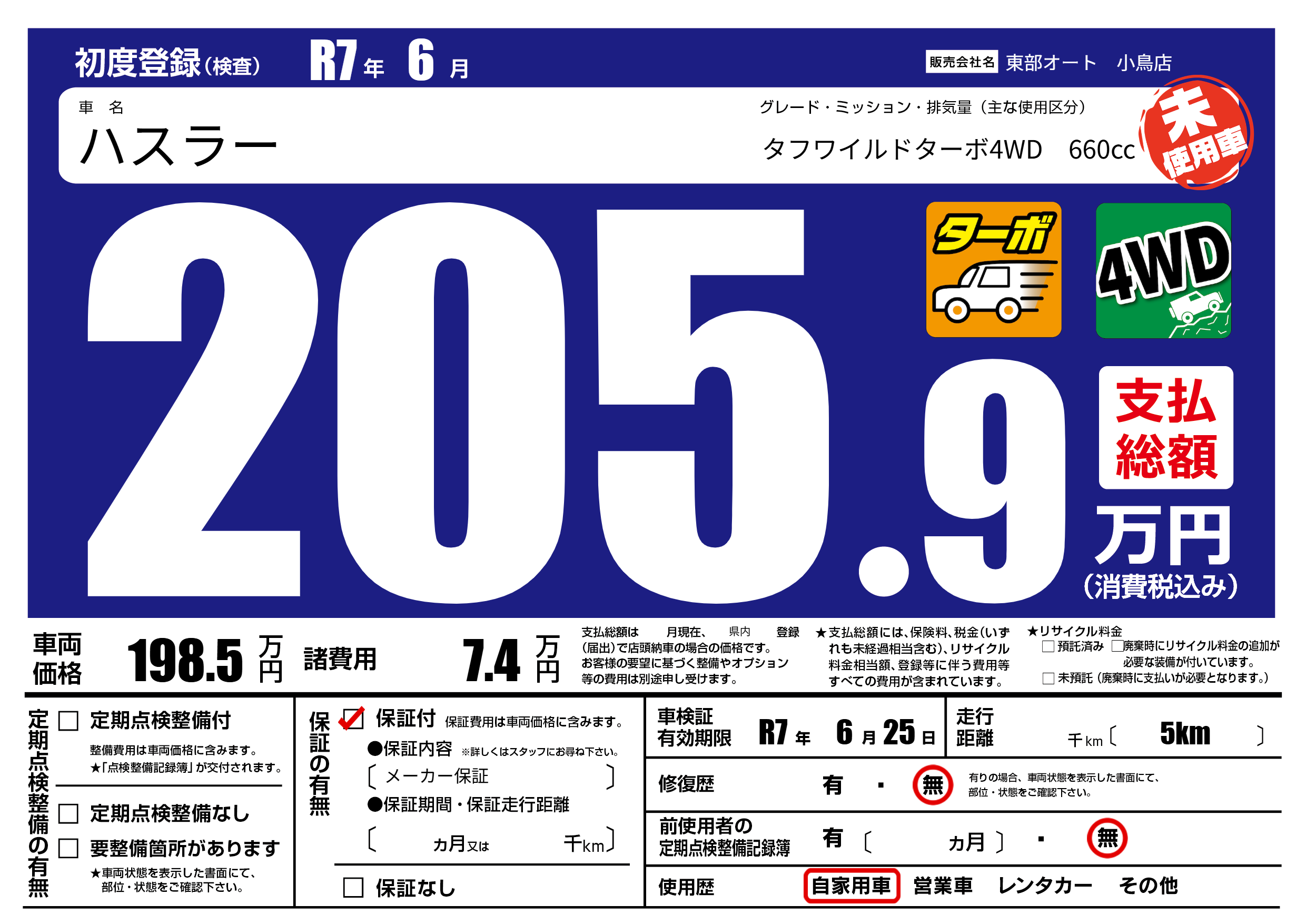 | 車検制限 | R7年 6月 25日 | ||