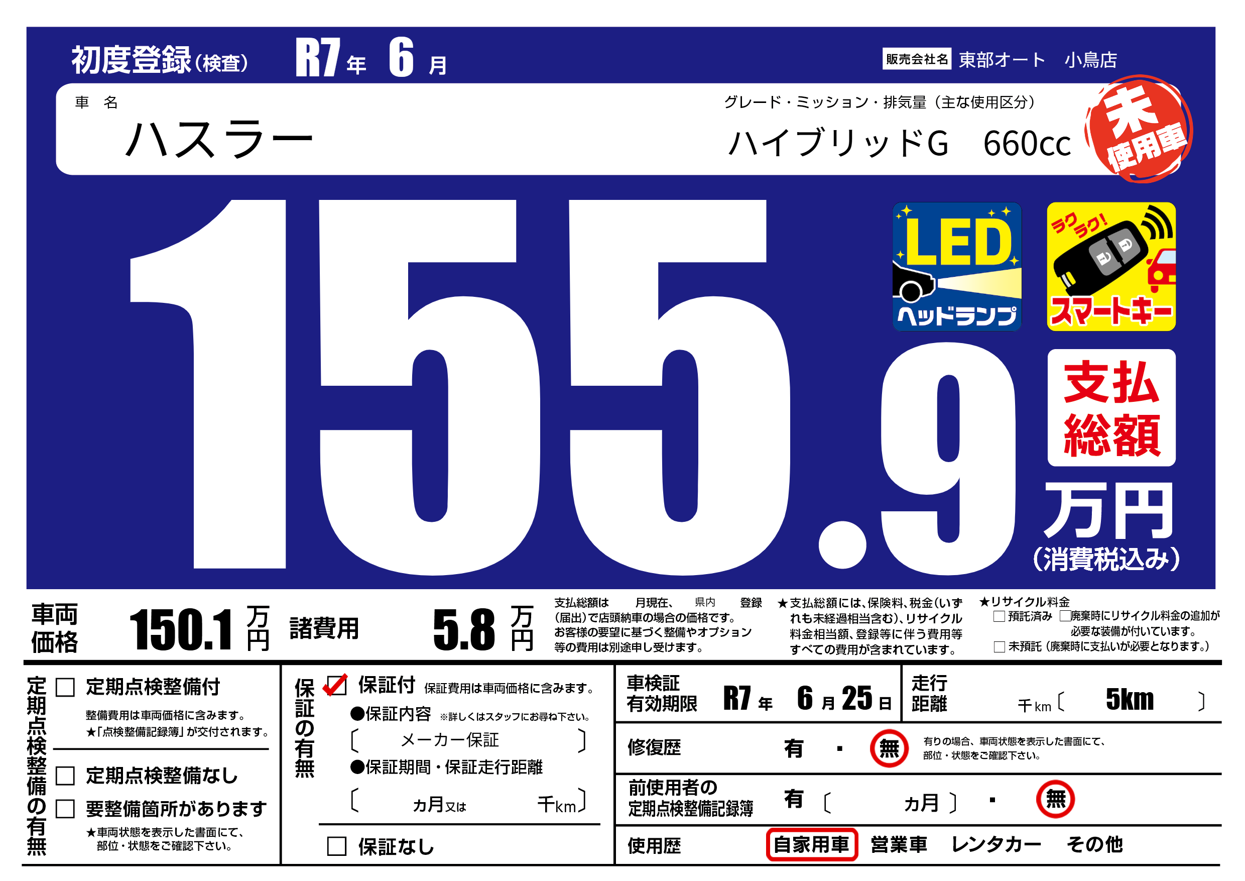 | 車名 | ハスラー | グレード ミッション 排気量 |