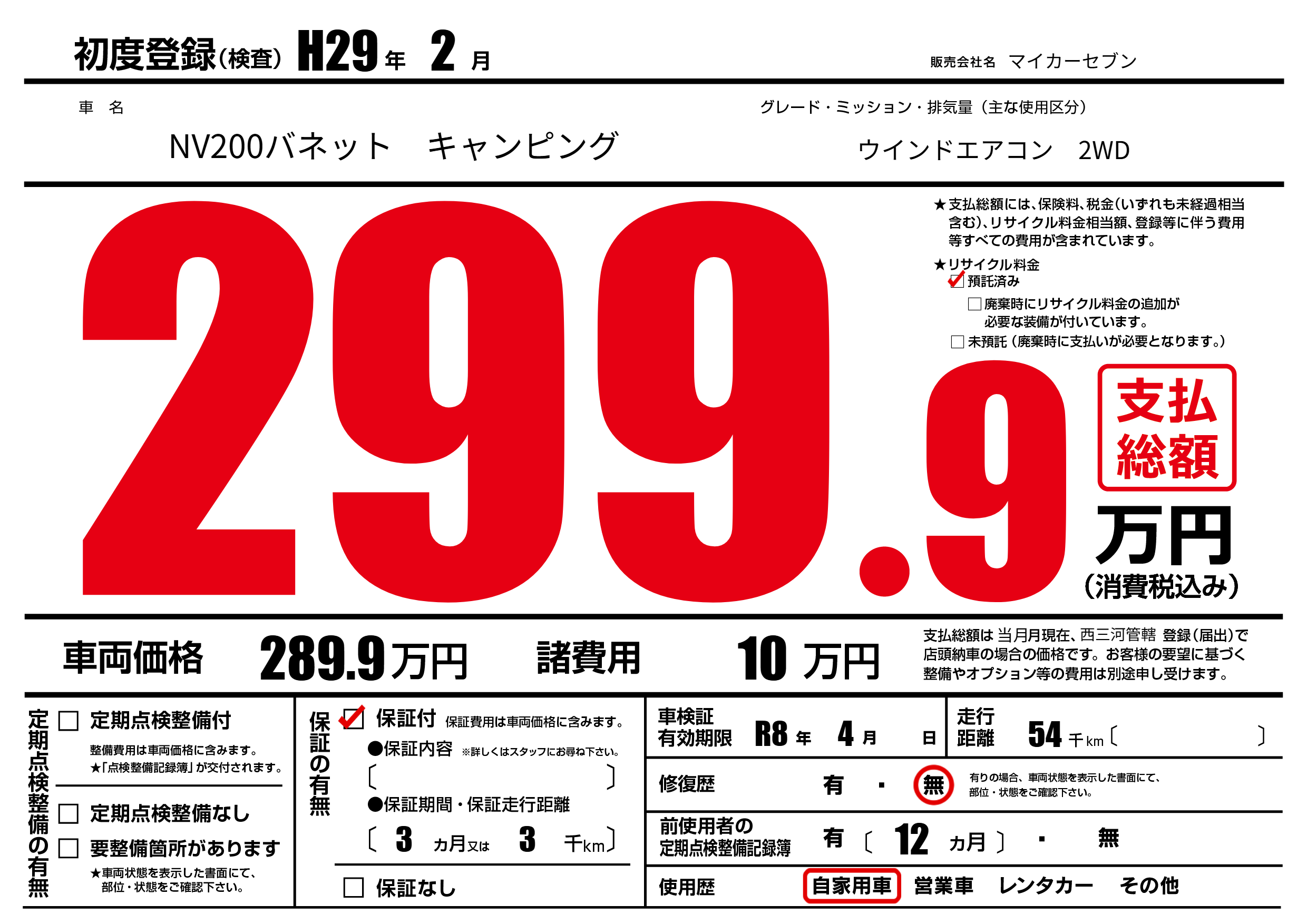 | 車検制限 | R8年 4月 - 日 | ||