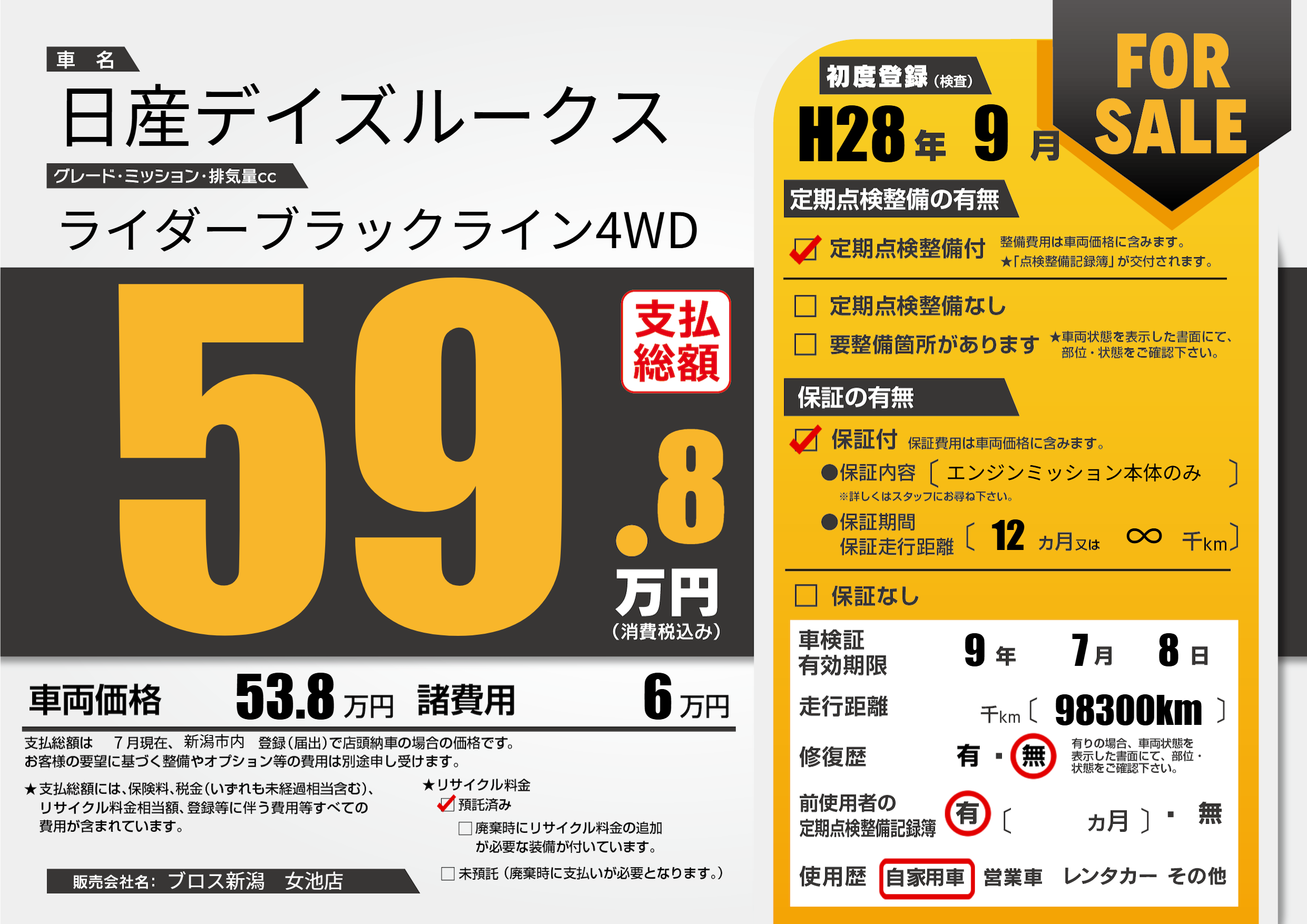 なし | 車検制限 | 9年7月8月 |