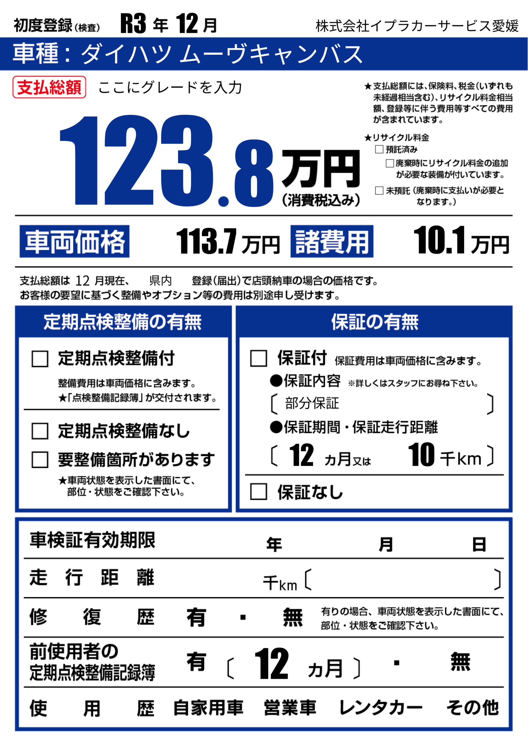 | 走行キロ | - | 初年度登録 | R3年12月 |