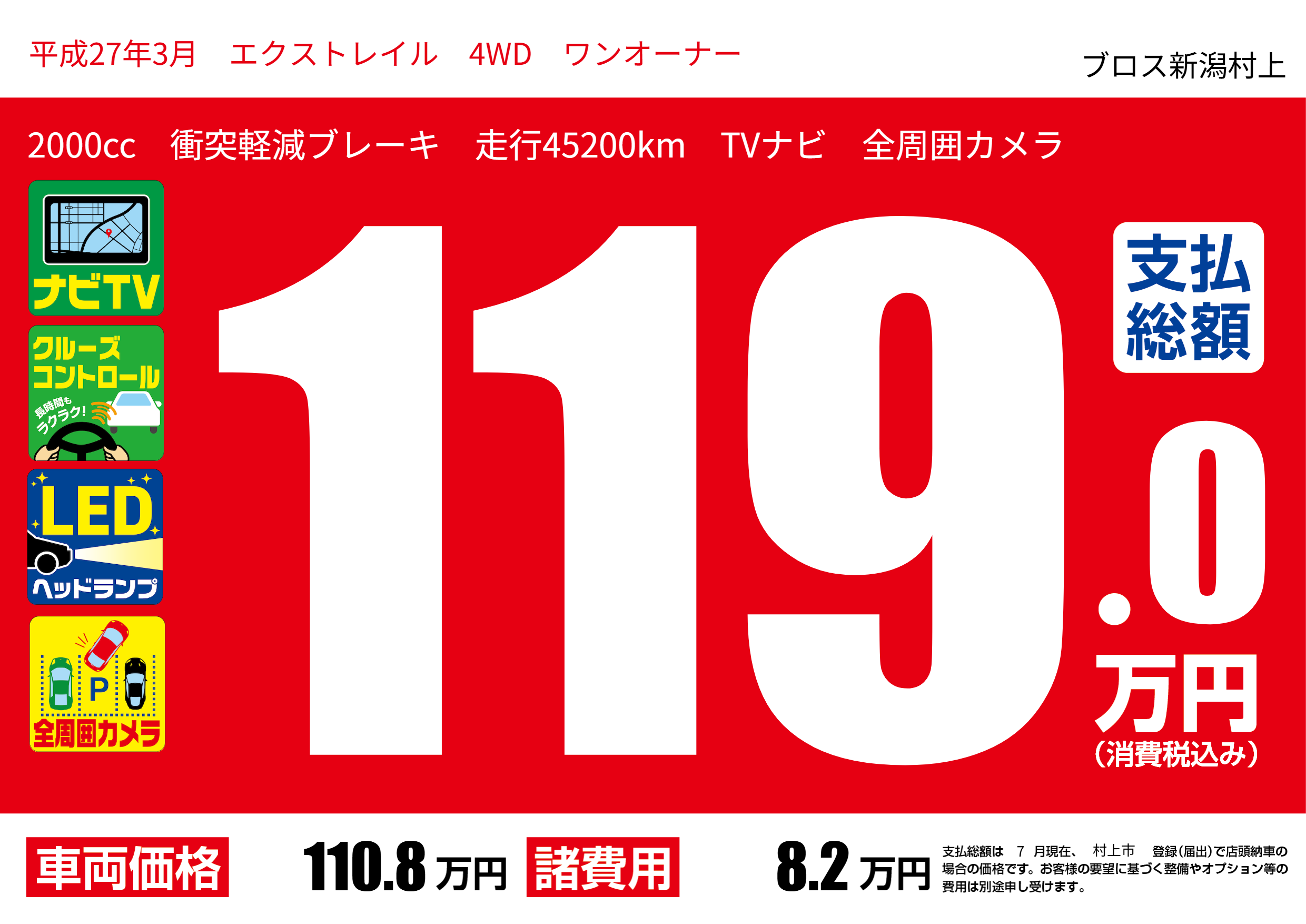 | 車名 | 平成27年3月 エクストレイル 4WD ワンオーナー | グレード ミッション 排気量 |