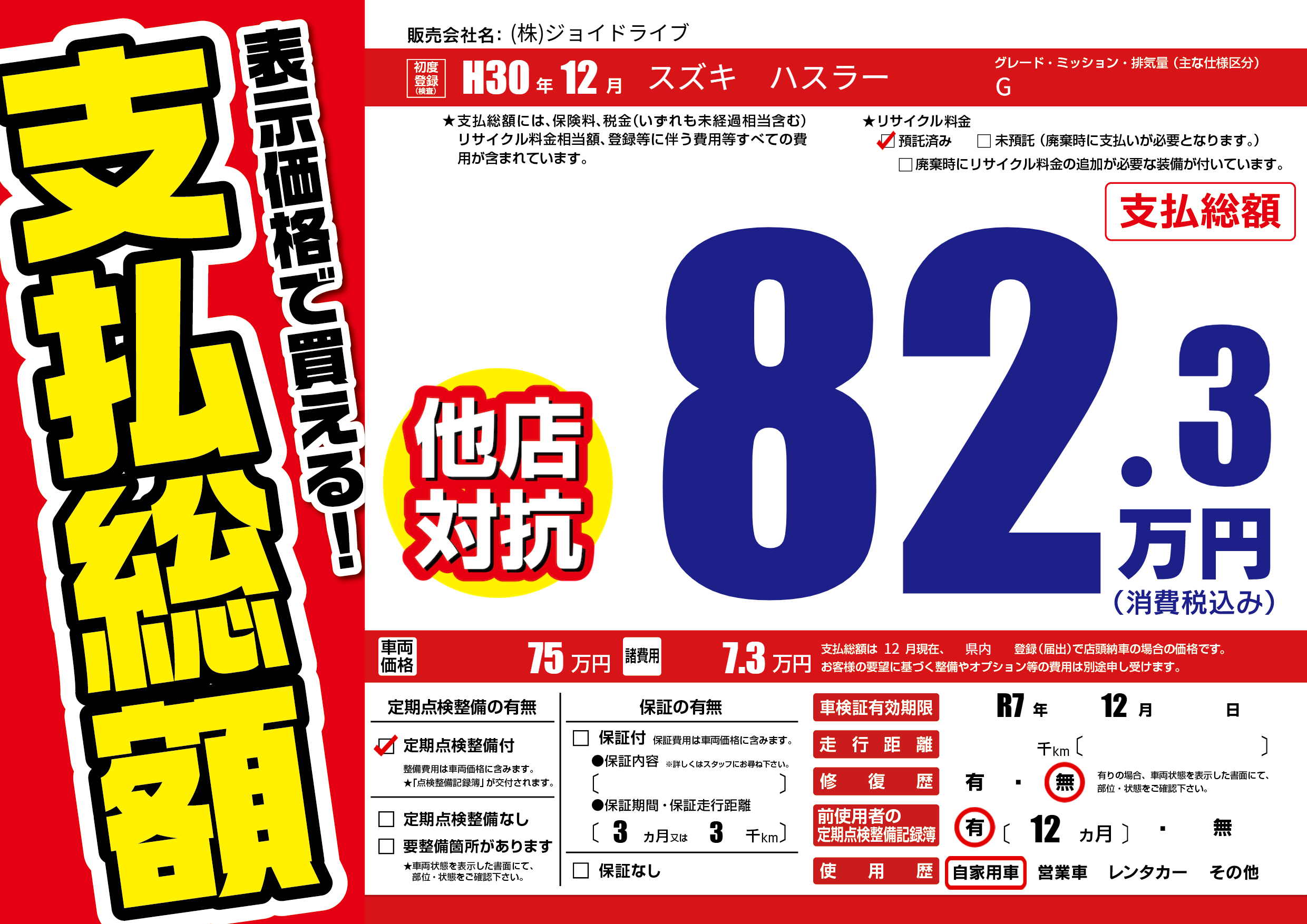 | 車検制限 | R7年 12月 - 日 | ||