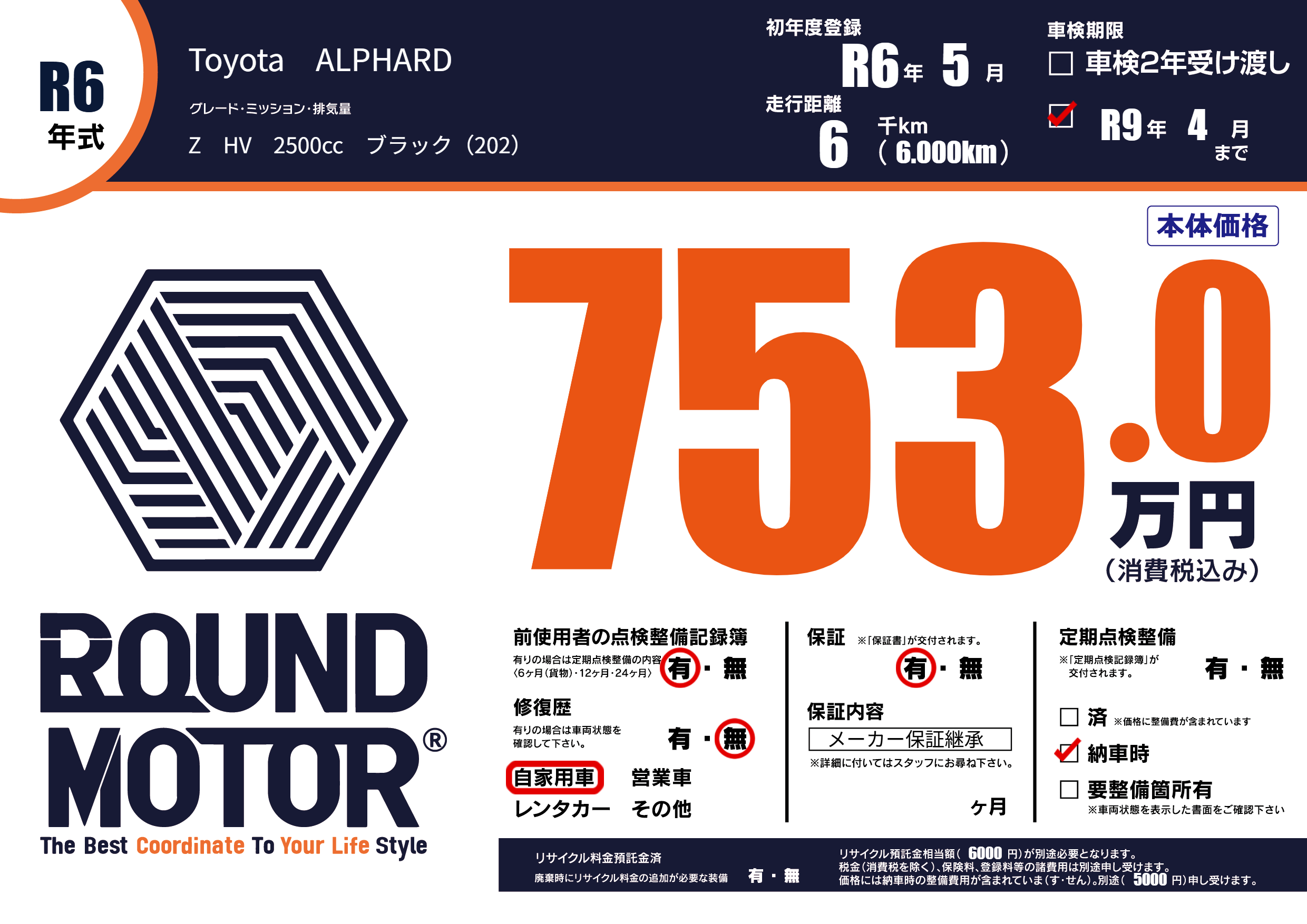 | 走行キロ | 0.6万km | 初年度登録 | R6年5月 |