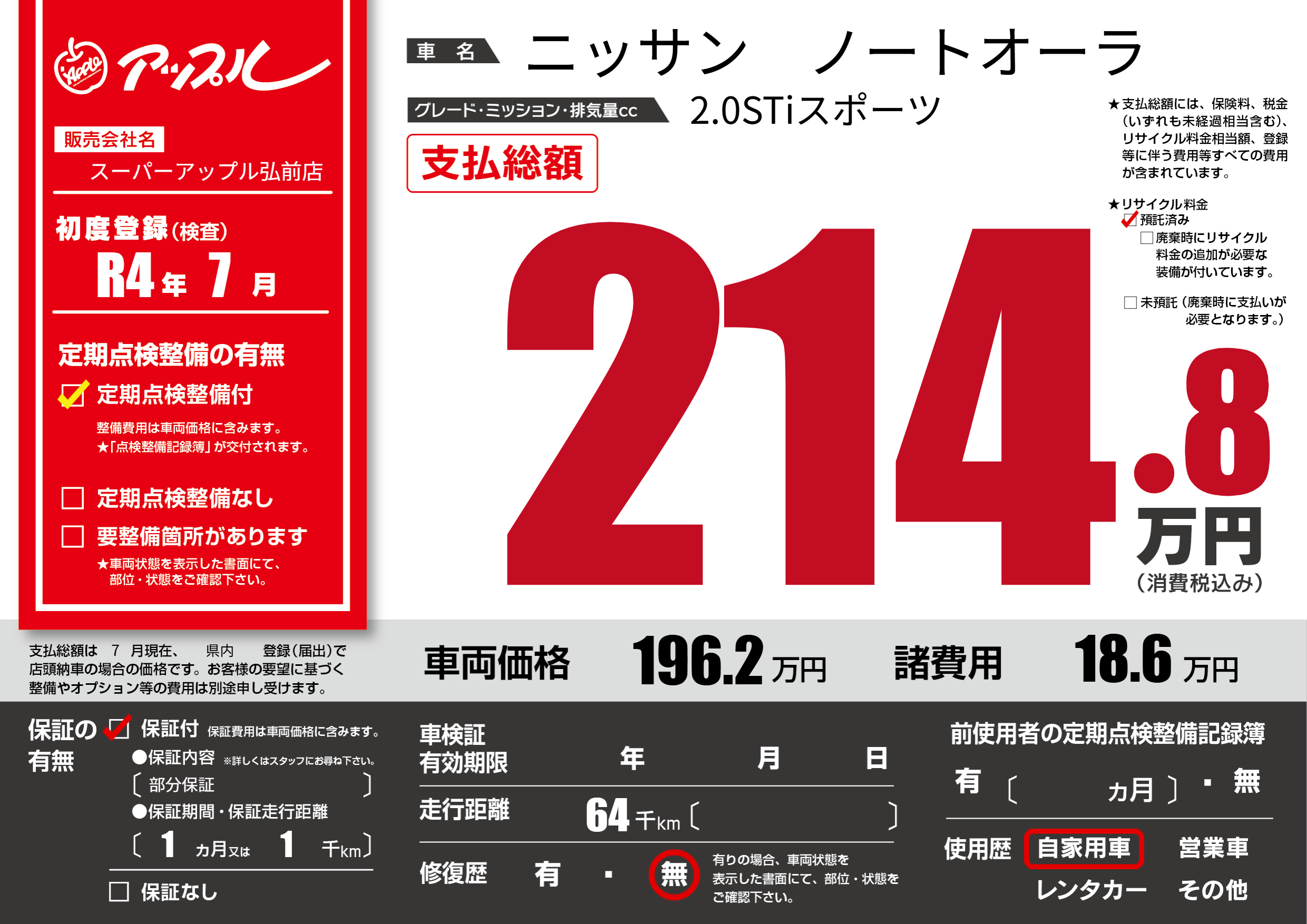 | 定期点検整備 | 定期点検整備あり | ||