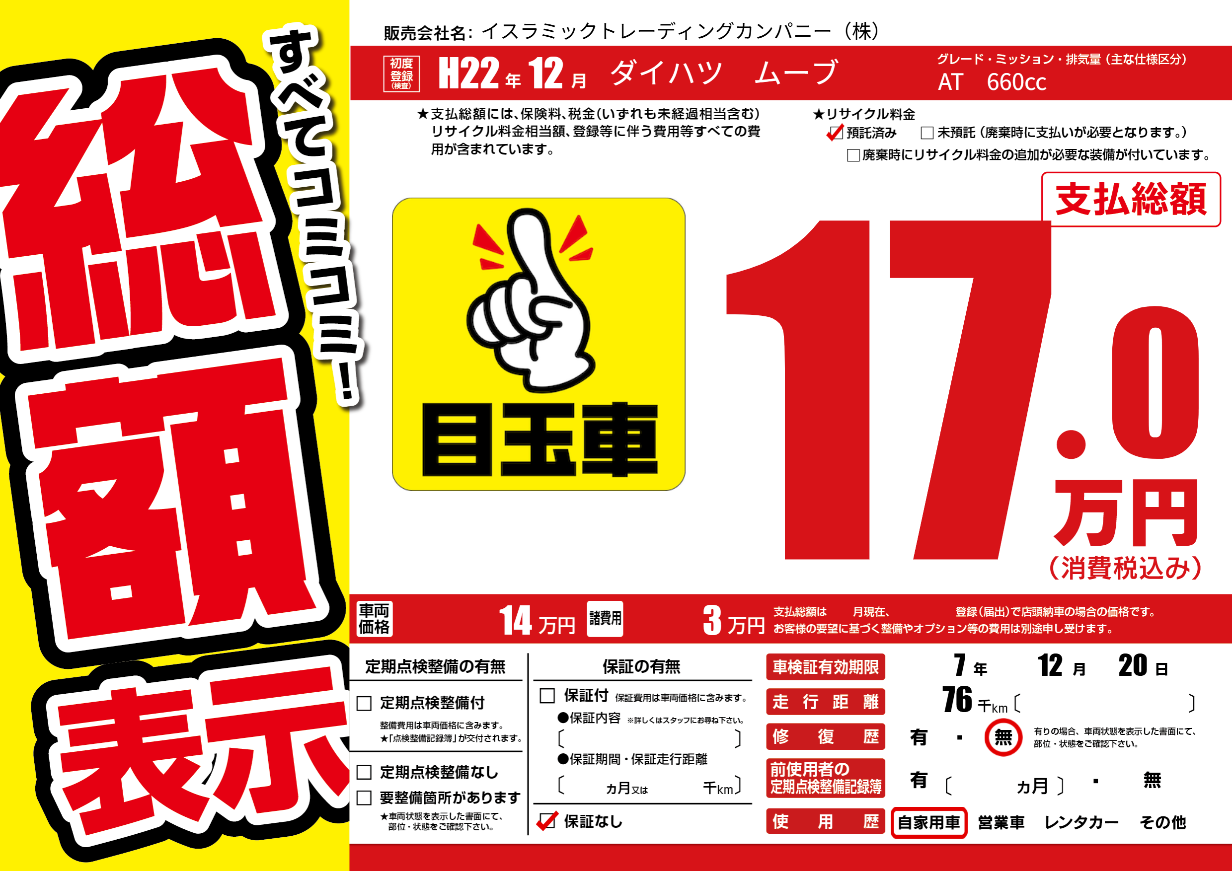 | 車検制限 | 7年 12月 20日 | ||