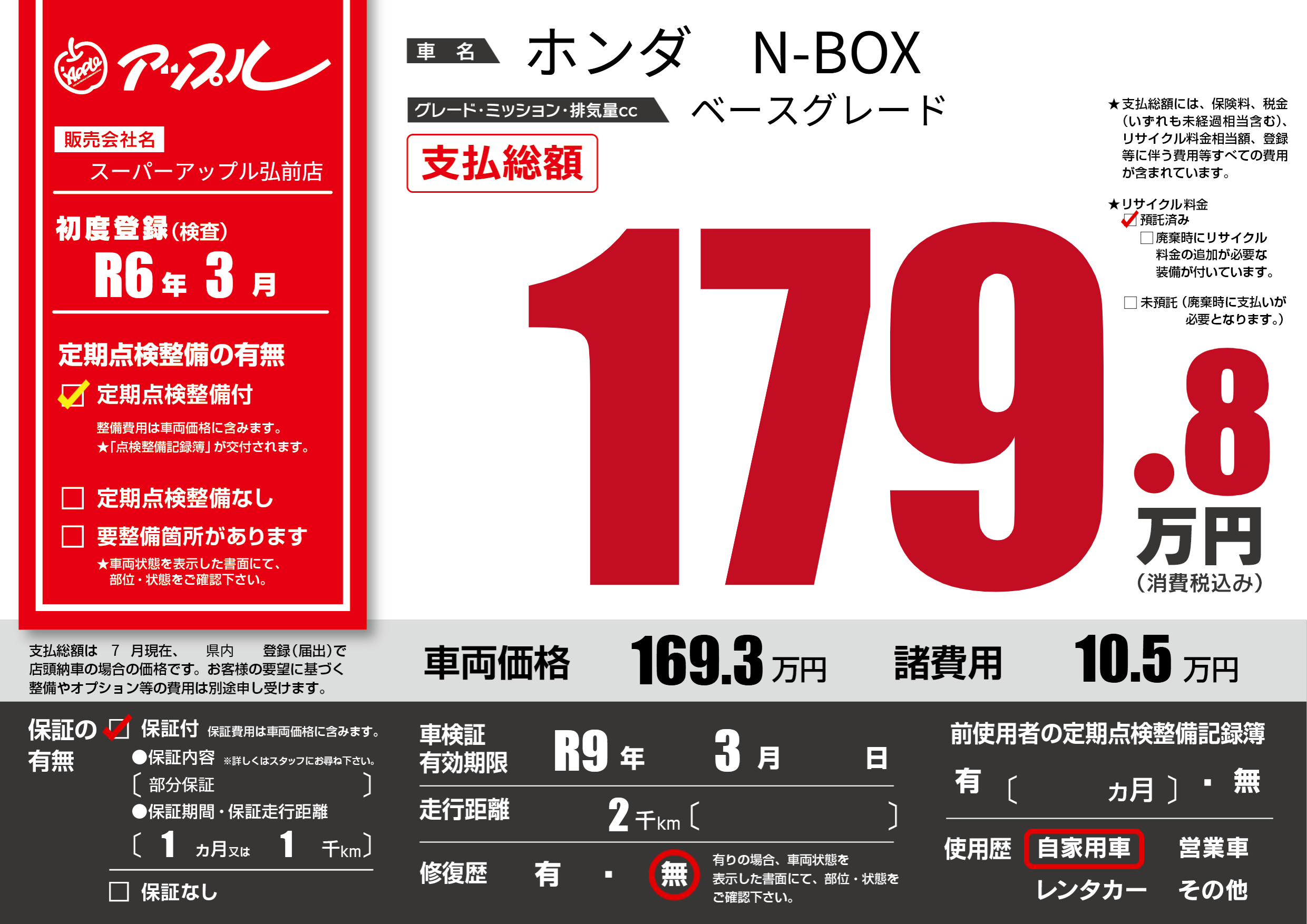 | 車名 | ホンダ N-BOX | グレード ミッション 排気量 |