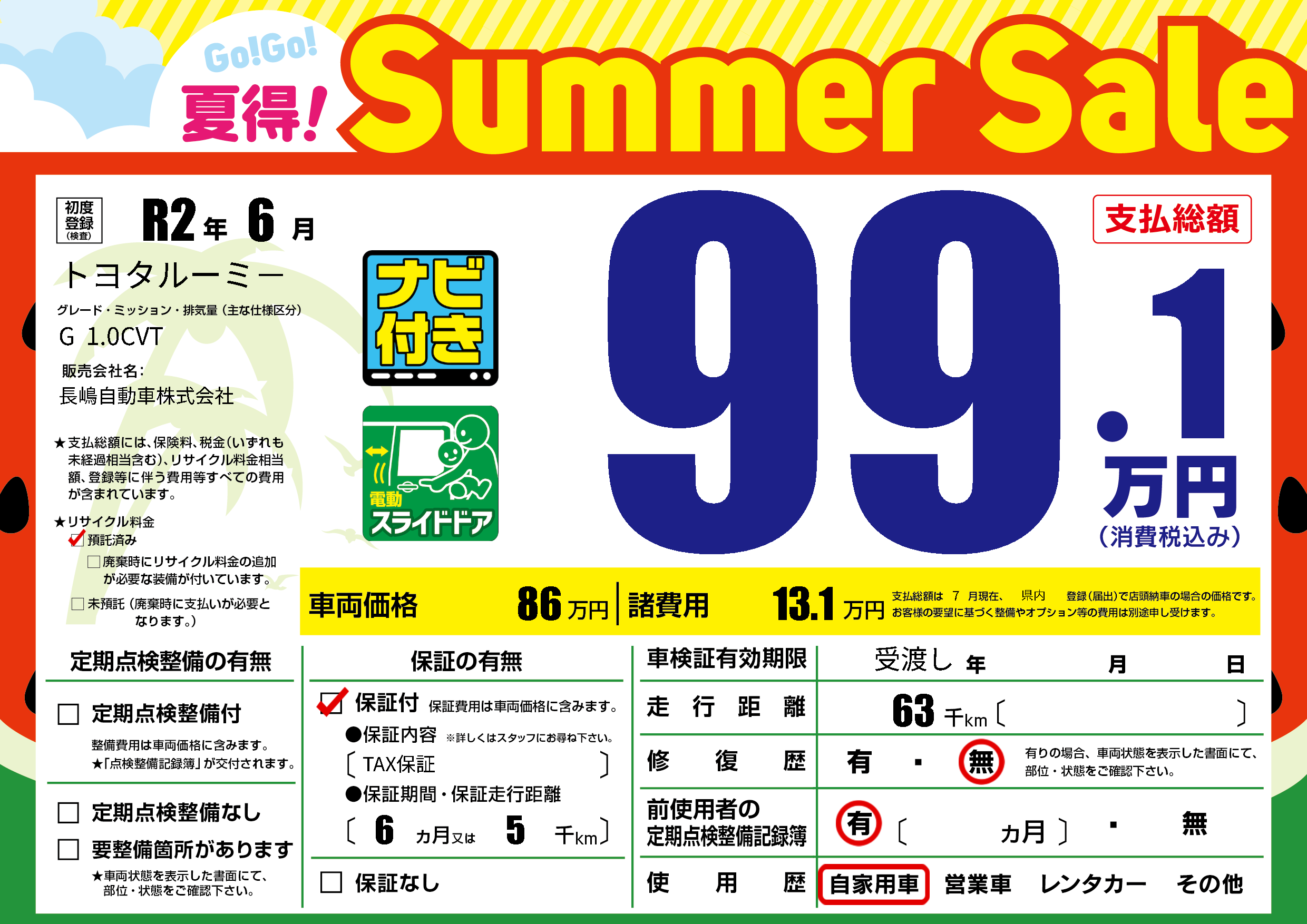 保証付き 保証内容(TAX保証) 6ヶ月または(5)千kmまで |