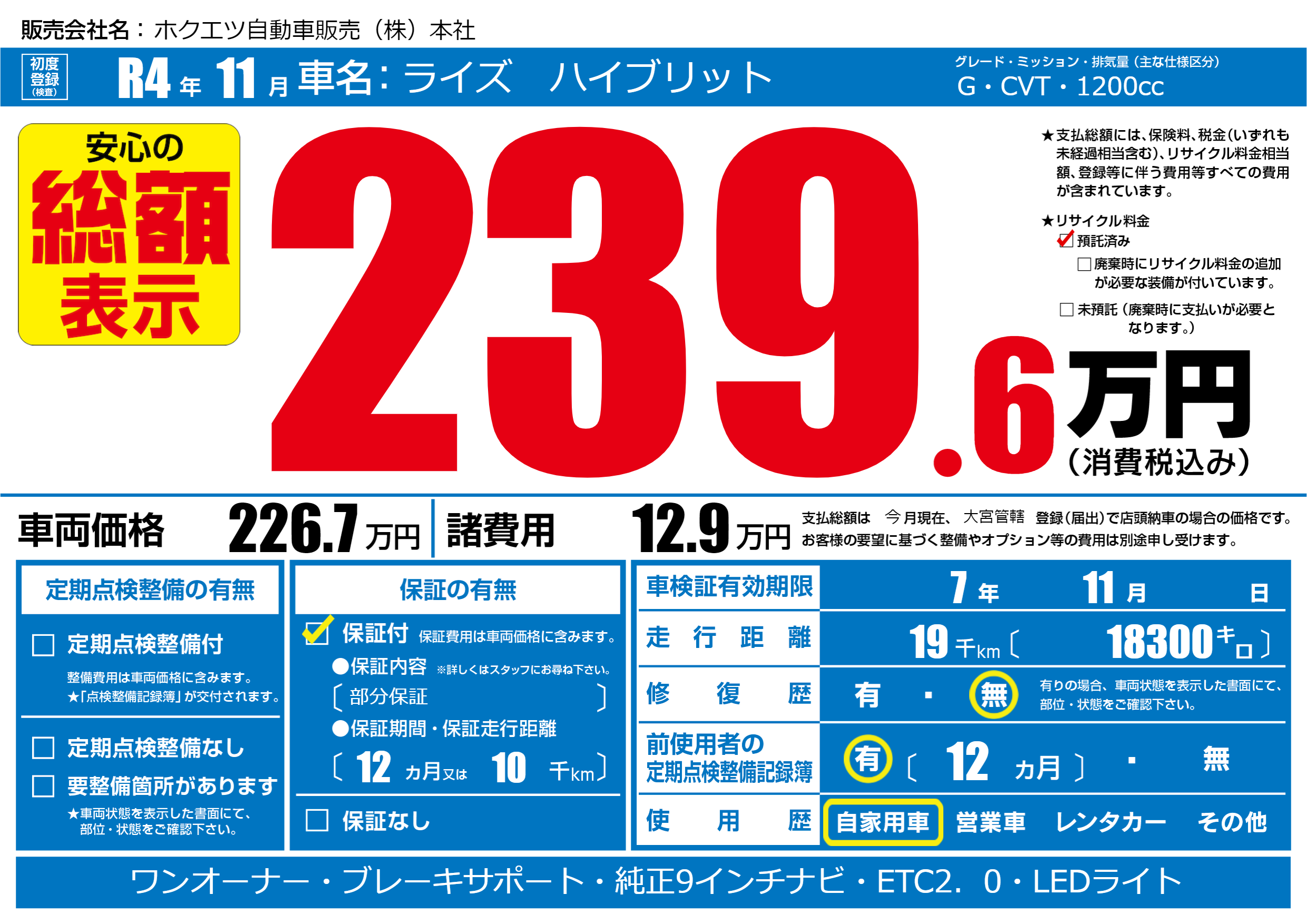 保証付き 保証内容(部分保証) 12ヶ月または(10)千kmまで |