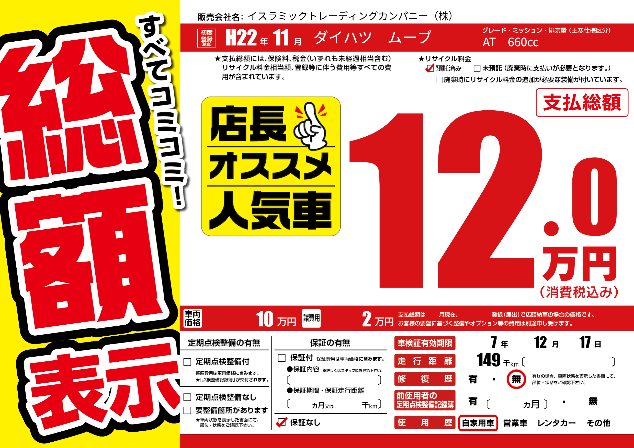 | 車検制限 | 7年 12月 17日 | ||