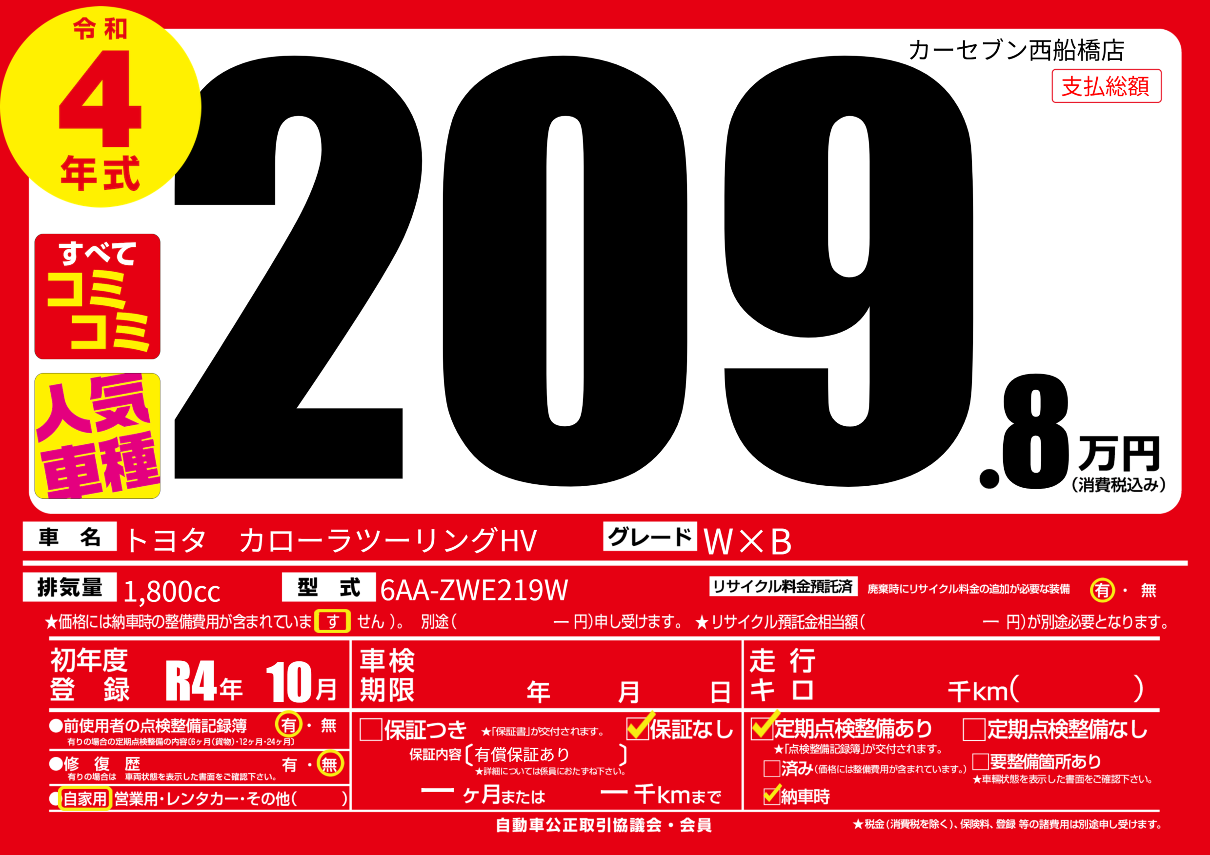 | 定期点検整備 | 定期点検整備あり 納車時あり | ||