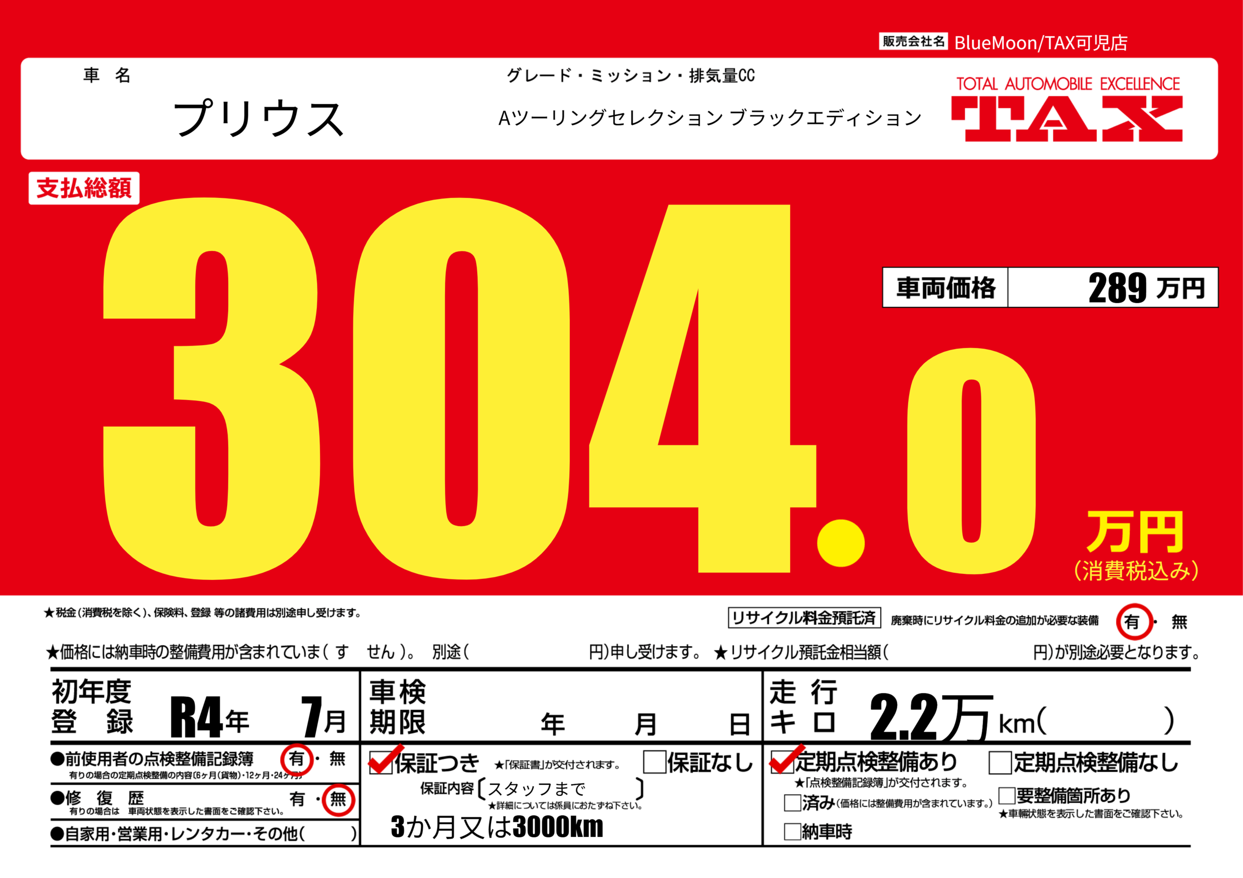 | 車名 | プリウス | グレード ミッション 排気量 |