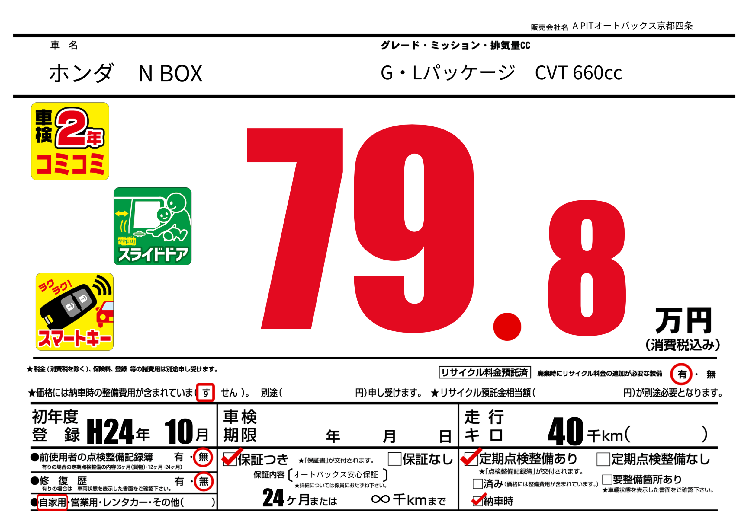 | 定期点検整備 | 定期点検整備あり 納車時あり | ||