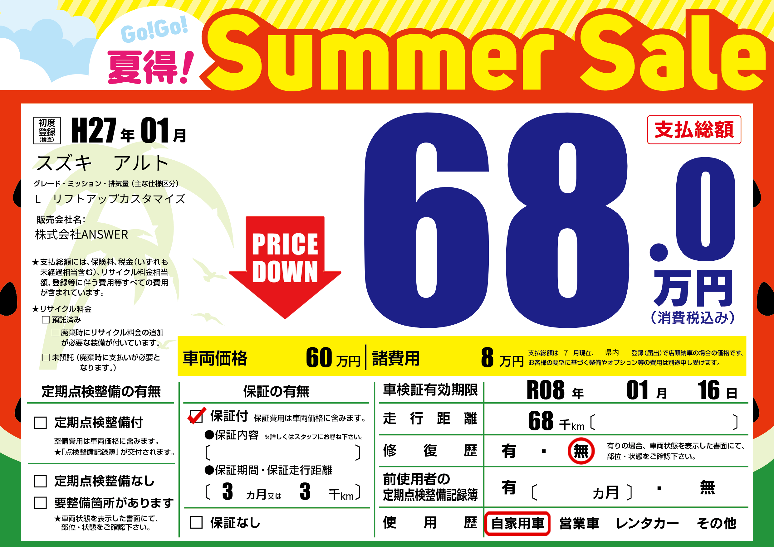 保証付き 保証内容(---) 3ヶ月または(3)千kmまで |